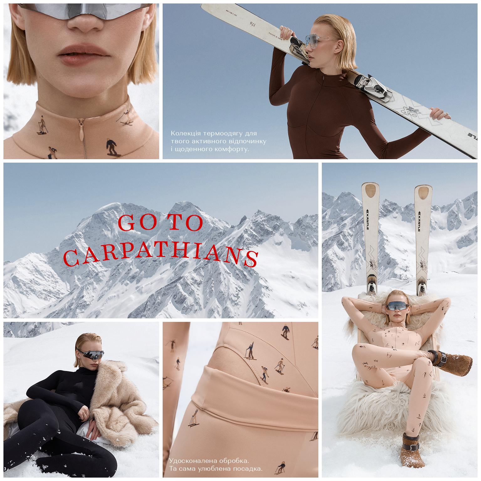 Бежевый термо-боди на флисе с горнолыжным принтом