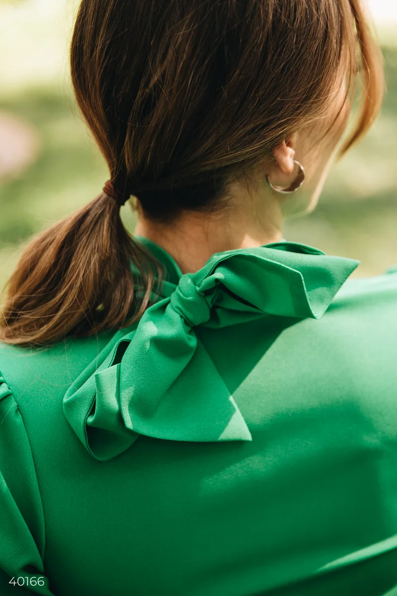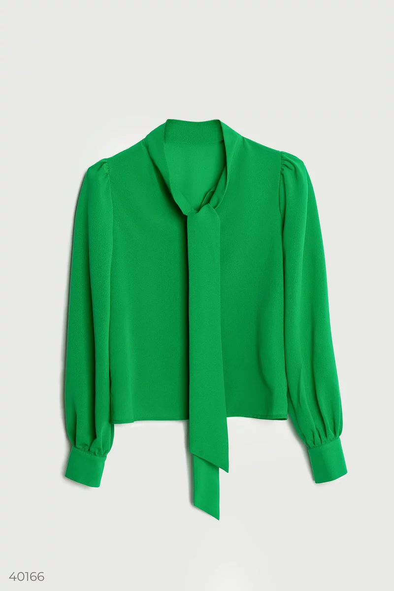 Elegant blouse in classic cut silk with long bishop sleeves and ascot collar. The collection was presented by Anna Rizatdinova - Ukrainian gymnast, bronze medalist of the Olympics in Rio de Janeiro, participant in the show "Dances with Stars".