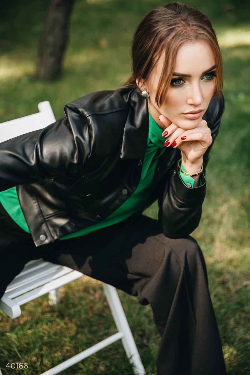 Today's trendy blouse with a modern cut looks elegant and aristocratic. I bought it in chocolate color in the Gepur store, it has a sheen, delicate in structure, requires delicate ironing or steam, there are beautiful buttons on the sleeves in two...See more