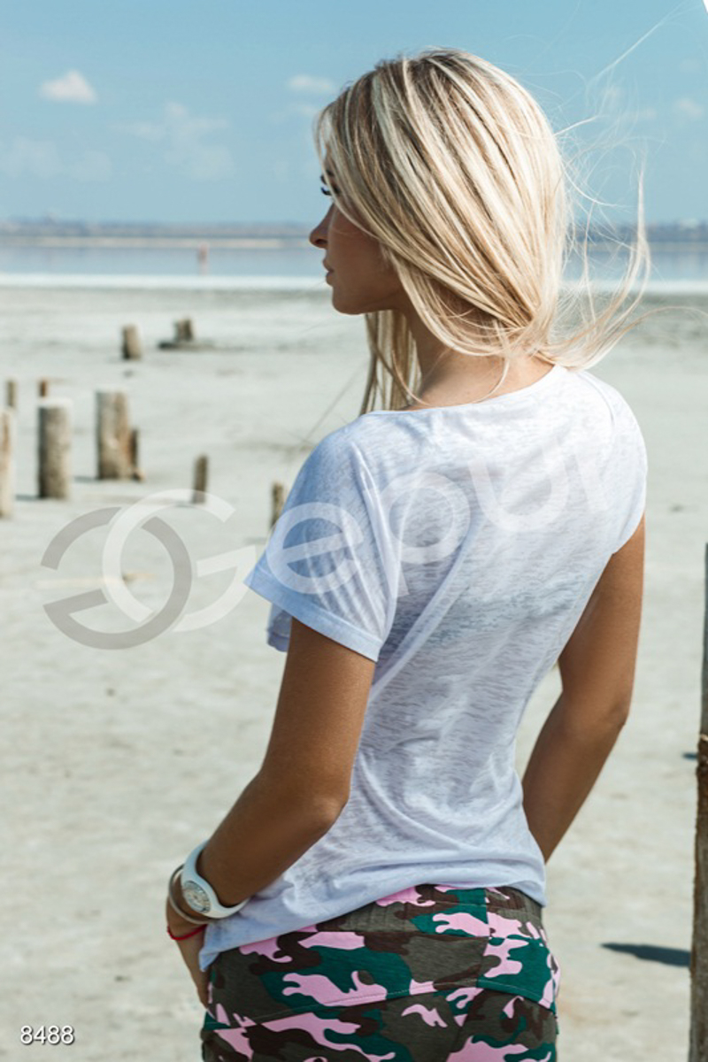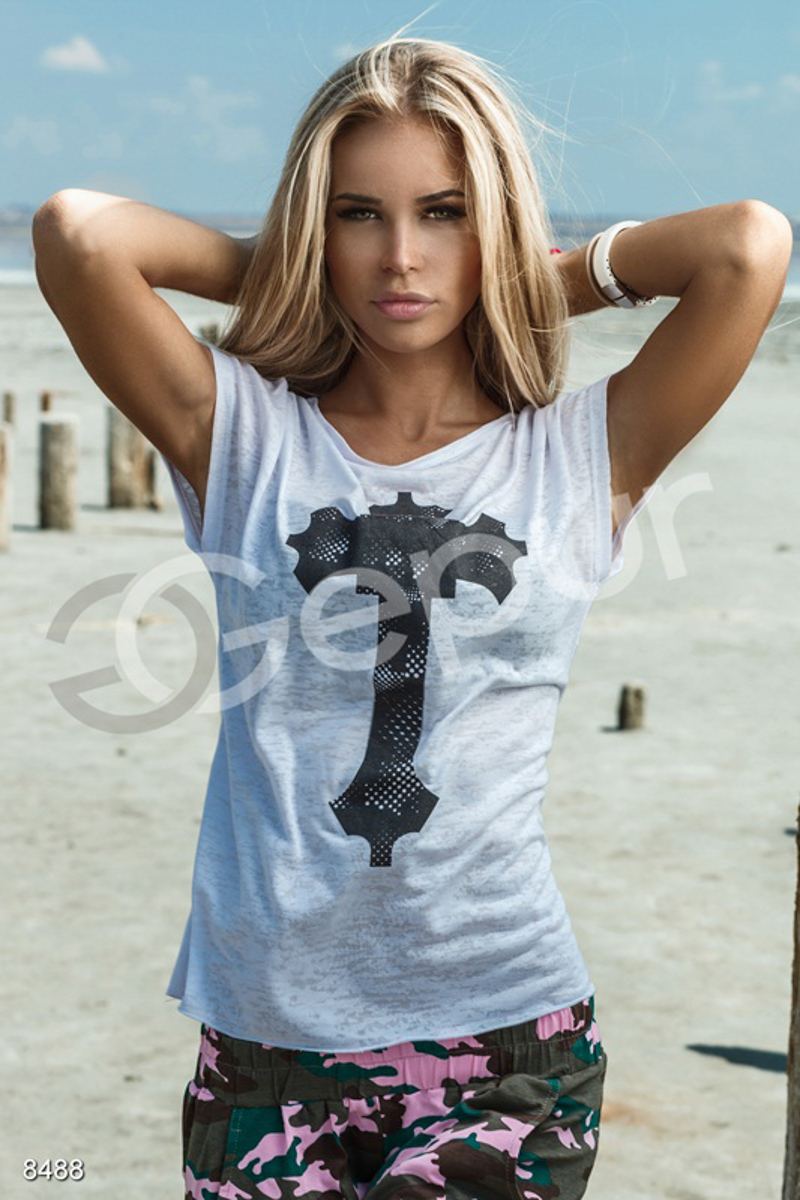Легкая приятная к телу футболка, ткань чуть просвечивает, в жаркую погоду само то! Идет в размер, сшито качественно, нитки не торчали.
