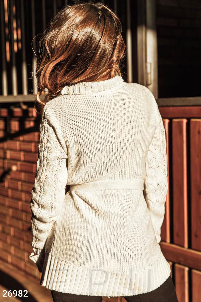 The cardigan is very nice and warm. Took white, looks very white. Stylish, modern. Took size S, for parameters 80-62-90, height 168. Sat perfectly. Managers worked very quickly, delivery as promised. I recommend!