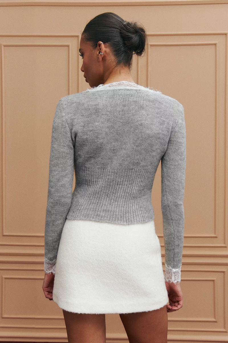 Gray cardigan with lace inserts