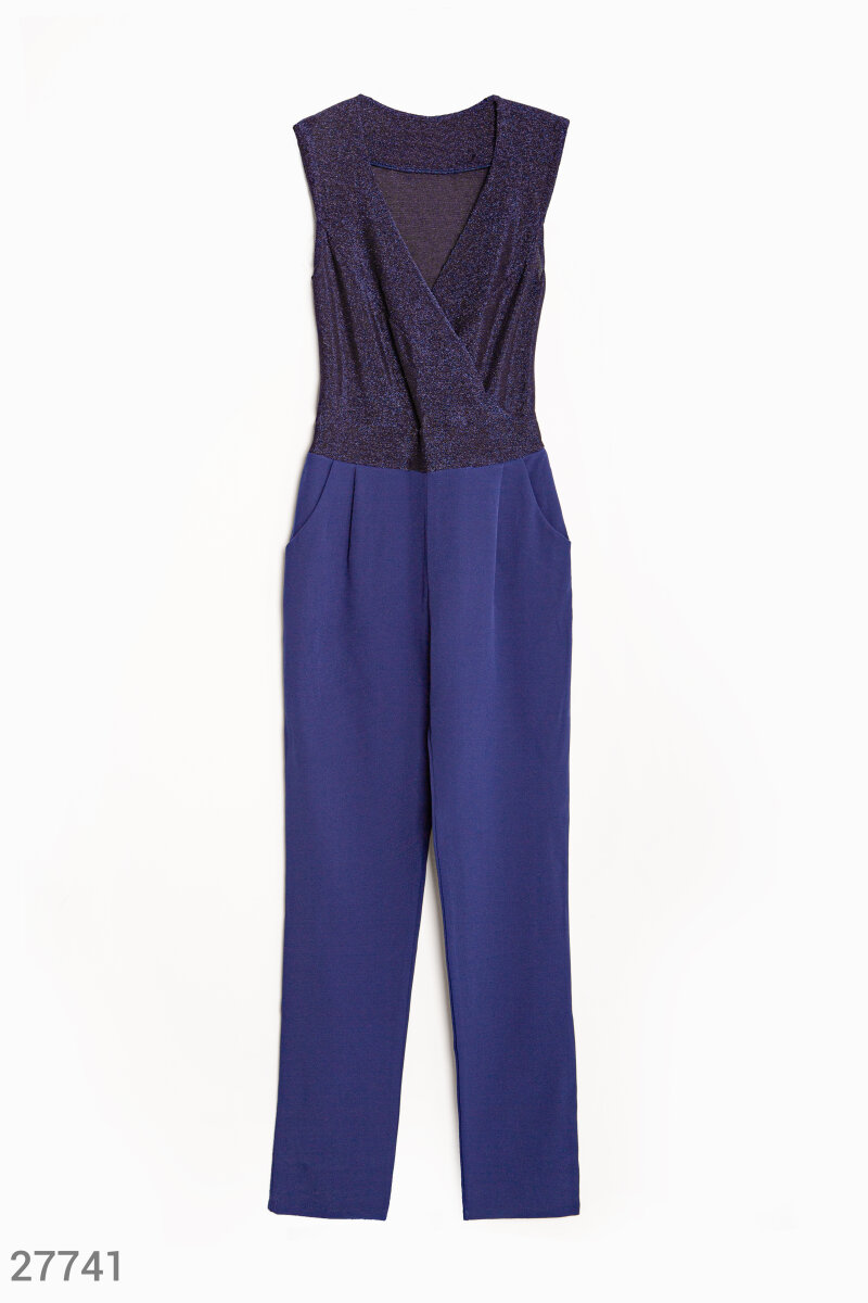 Комбинированный брючный комбинезон: лиф на запáх, выполненный из легкого трикотажа с нитью люрекса, зауженные брюки с защипами и двумя прорезными карманами. Обращаем внимание, что цвет комбинезона изменился (см. предметное фото). 16.09.2020