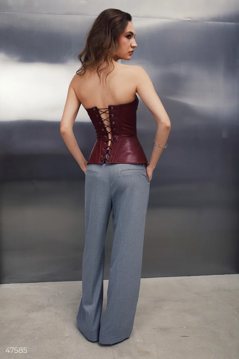 Burgundy basque corset made of eco-leather