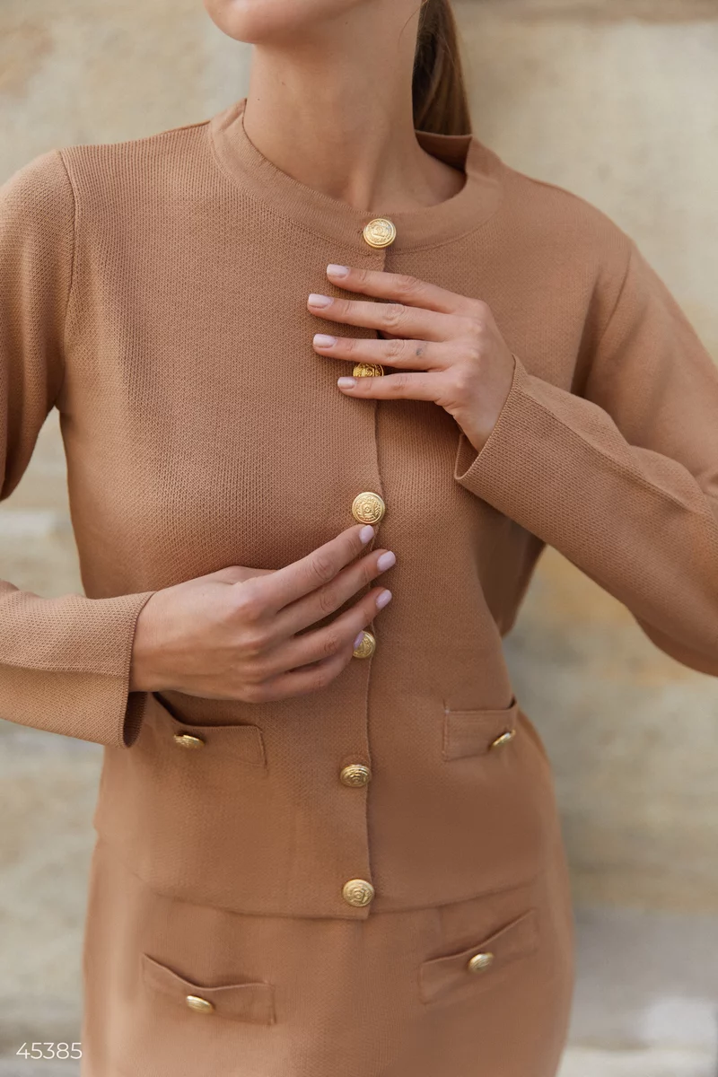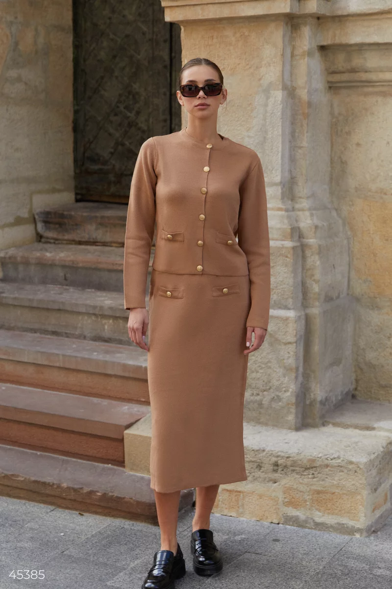 An old money suit is the perfect match between a straight pencil skirt and a fitted cardigan. Made from soft knitted fabric of a milky shade. The completion of a stylish casual look will be low-speed shoes - mules, loafers or oxfords.