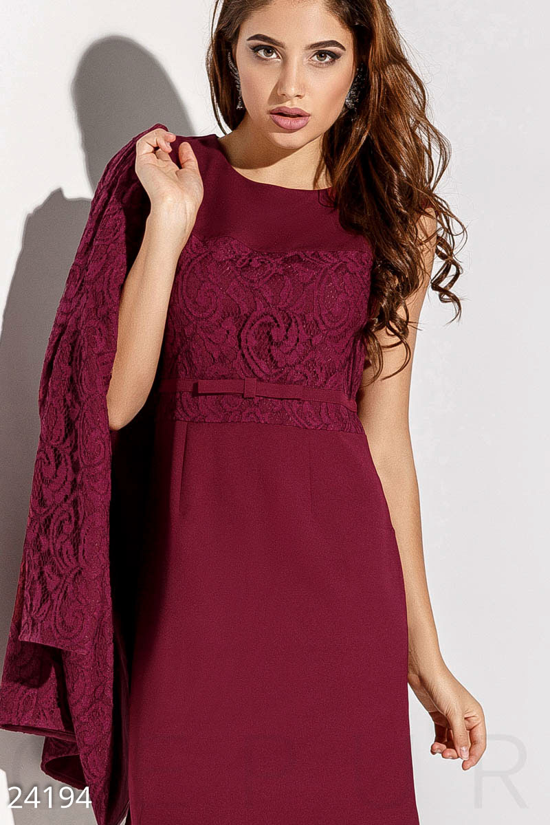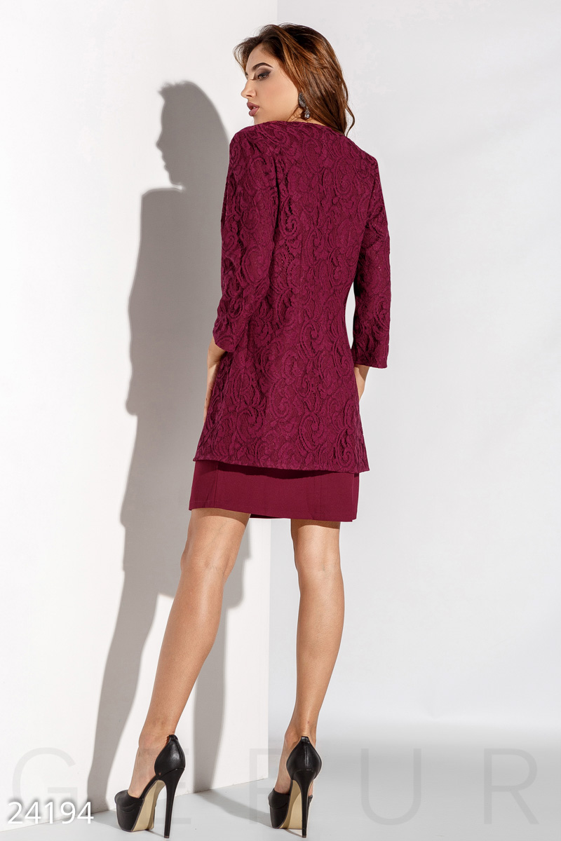 Праздничный костюм-двойка: элегантное платье-футляр с завышенной талией и гипюровыми вставками на кокетке, удлиненный жакет с рукавом 3/4.