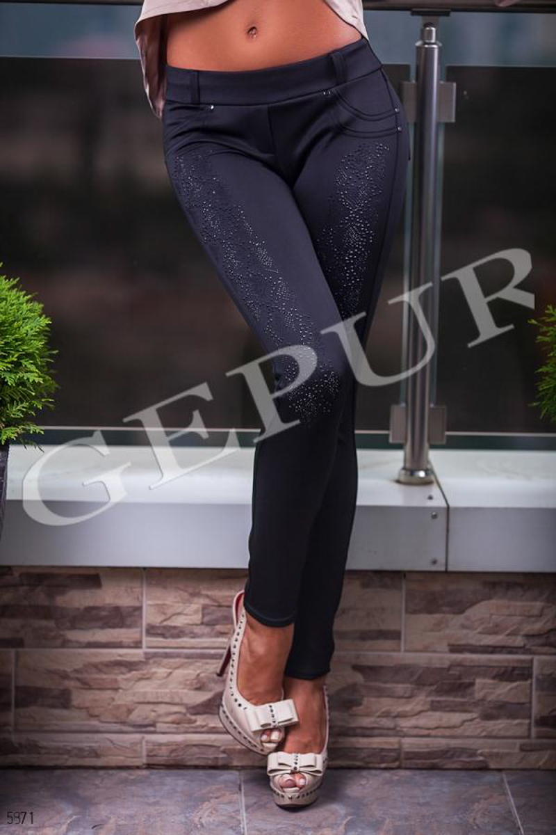 Классные леггинсы. Стразы не осыпаются, смотрятся интересно. Немного тянутся. Заказывала М на размер 42-44. Подошли отлично