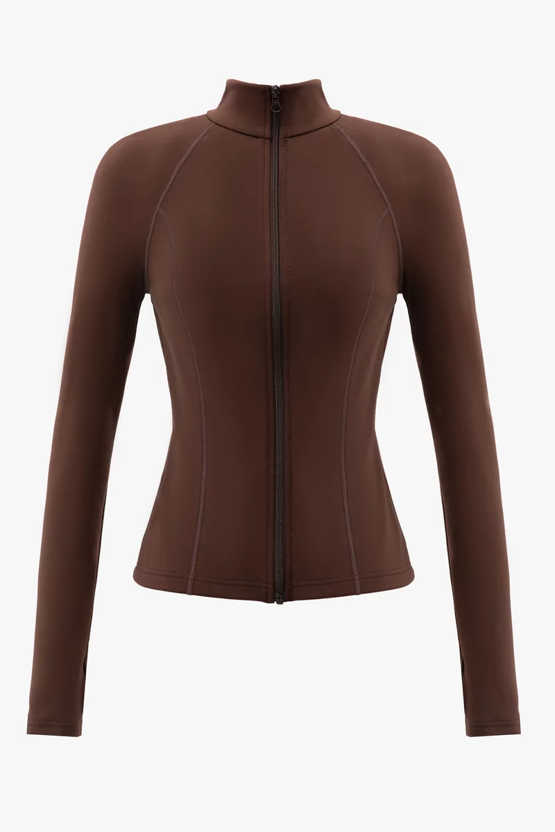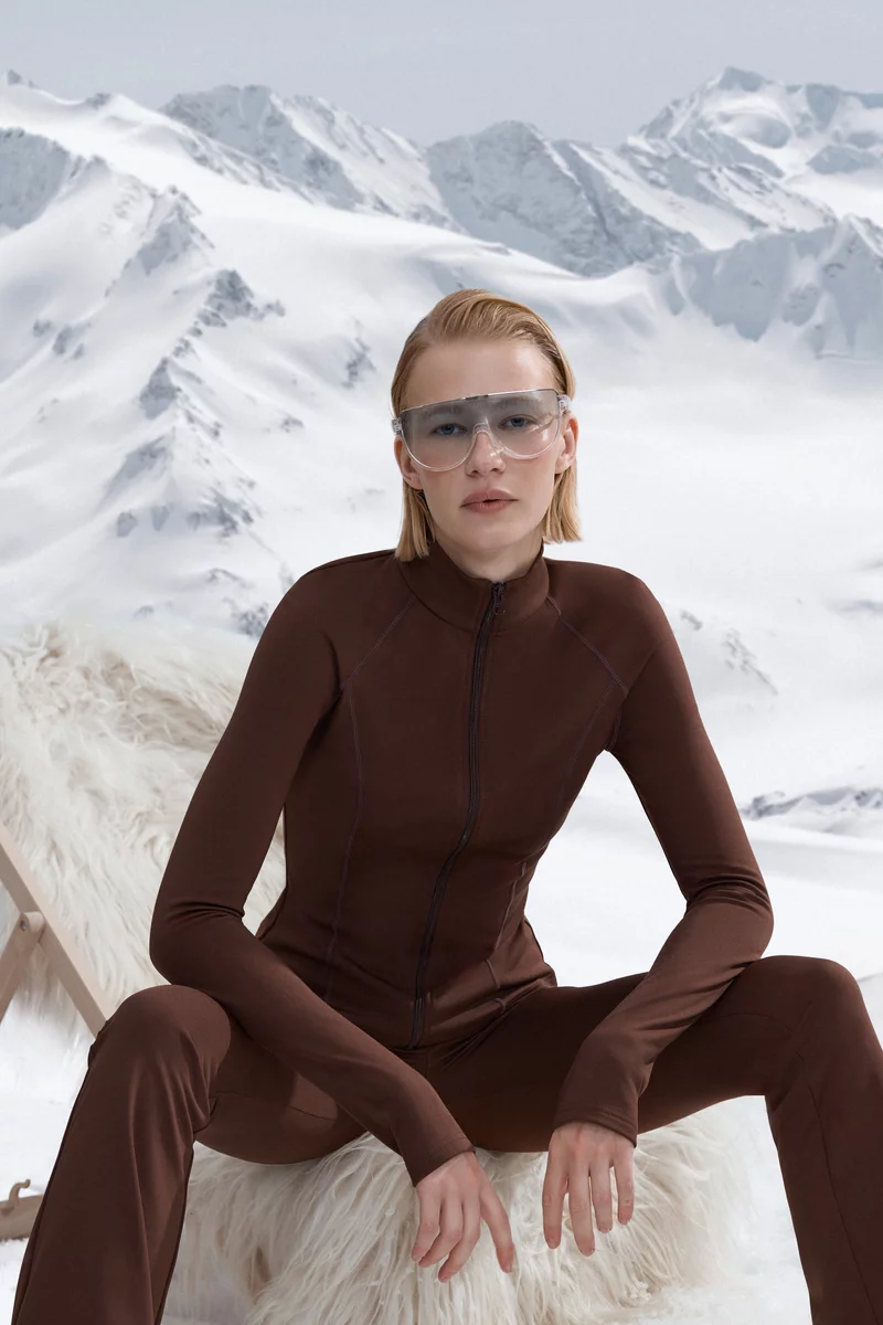 Longsleeve made of soft knitwear on thin, yet dense fleece - the fabric perfectly retains heat, while effectively emphasizing the figure and modeling the silhouette. Fastens with a zipper