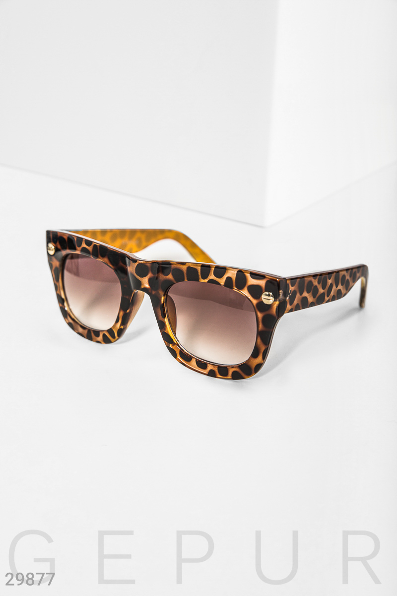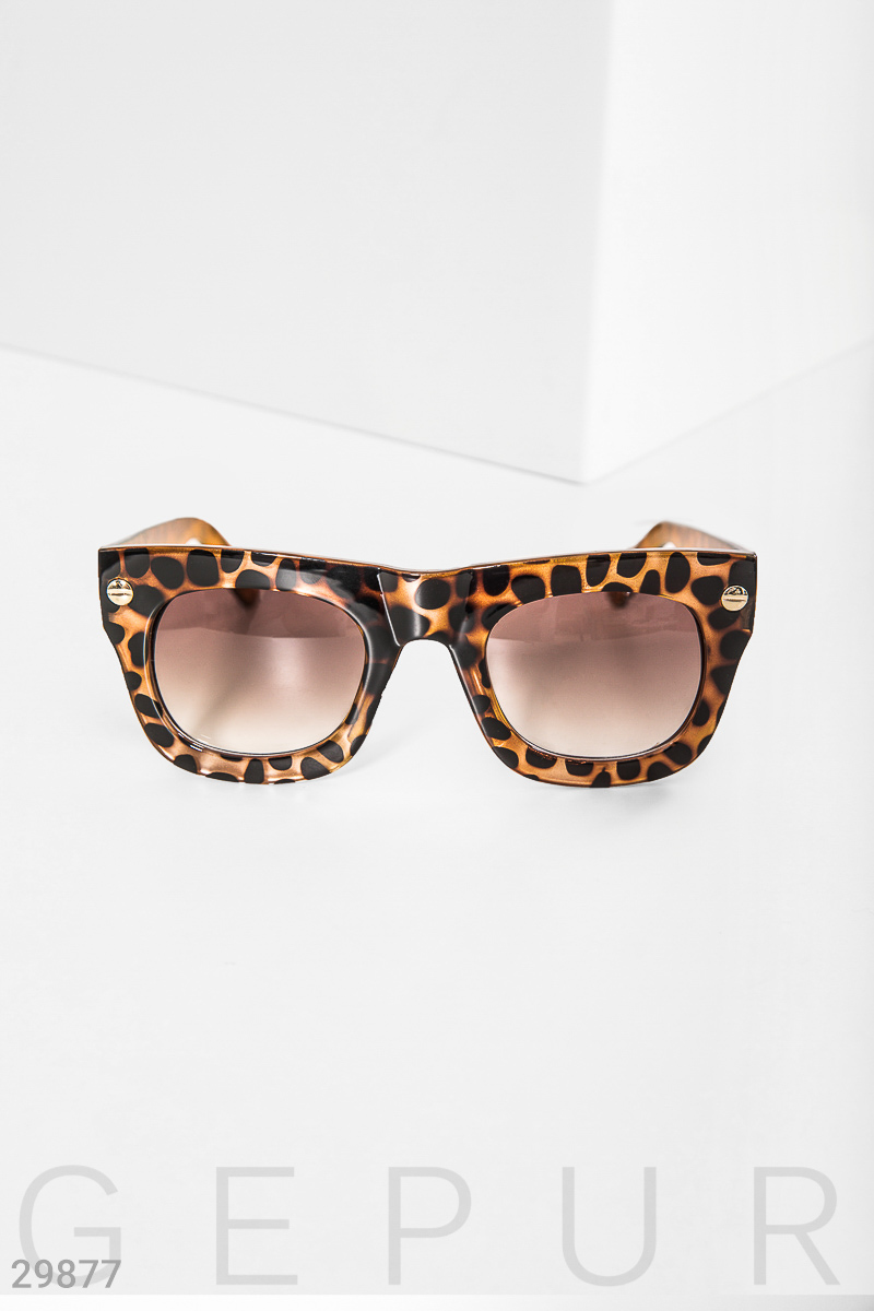 Квадратные солнцезащитные очки в стильной оправе черепаховой расцветки, зауженными дужками и удобными литыми носоупорами.