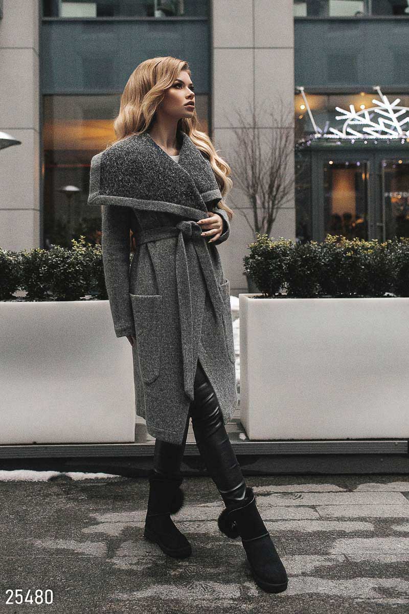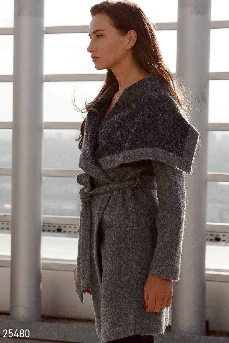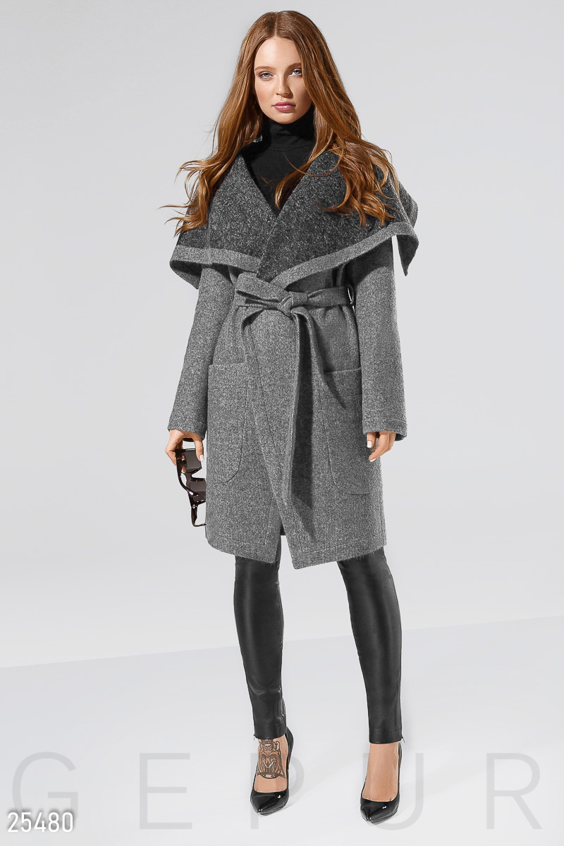 Comfortable women's coat from Gepur designers, made of soft premium coat fabric: voluminous lapels, large patch pockets and a detachable matching belt.