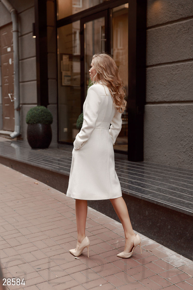 Classic coat by Gepur designers, made of premium coat fabric: strict turn-down collar, set-in belt, slightly flared hem with two in-seam pockets. The face of the collection: Victoria Vikel is a popular Instagram blogger and it-girl.