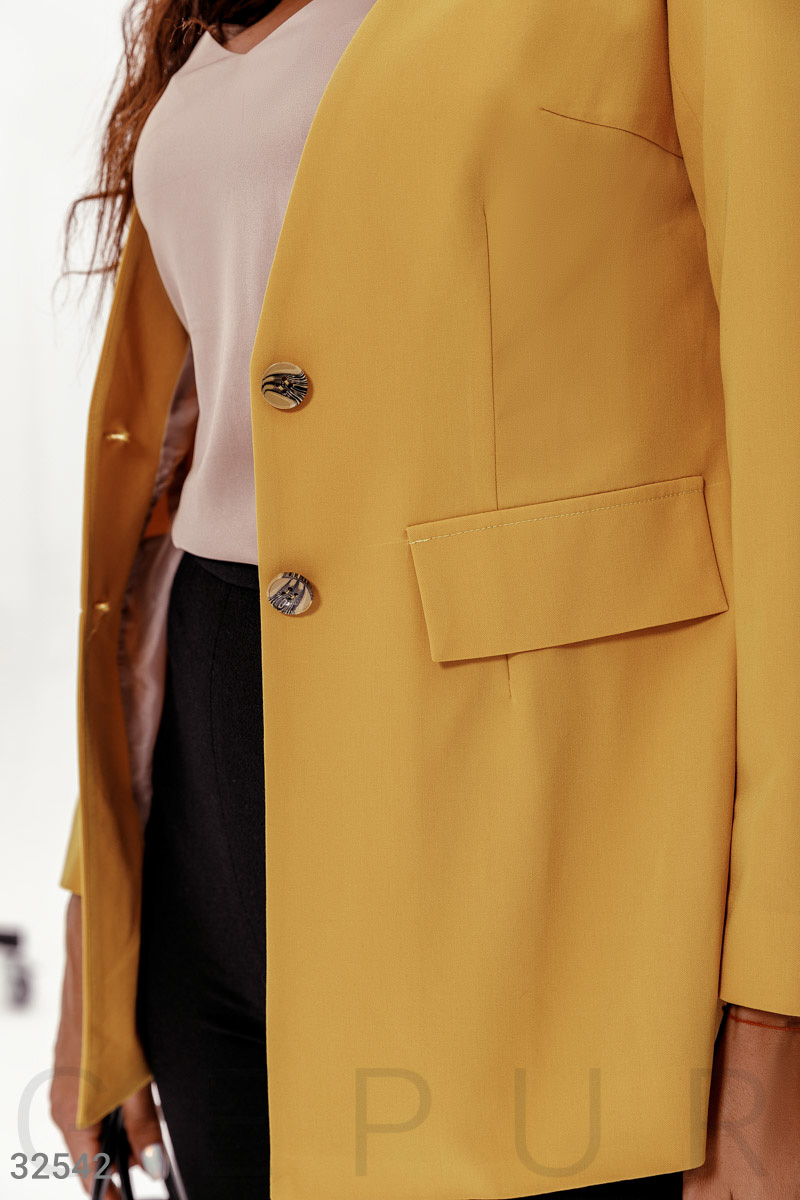 Цвет пиджака не желтый, а больше горчичный на видео вообще очень отличается цвет от того, что пришел. Ткань тонкая пошит плохо кривовато немного в одном месте на груди топорщиться, что сразу делает изделие не пригодным для носки. L большой мне...See more