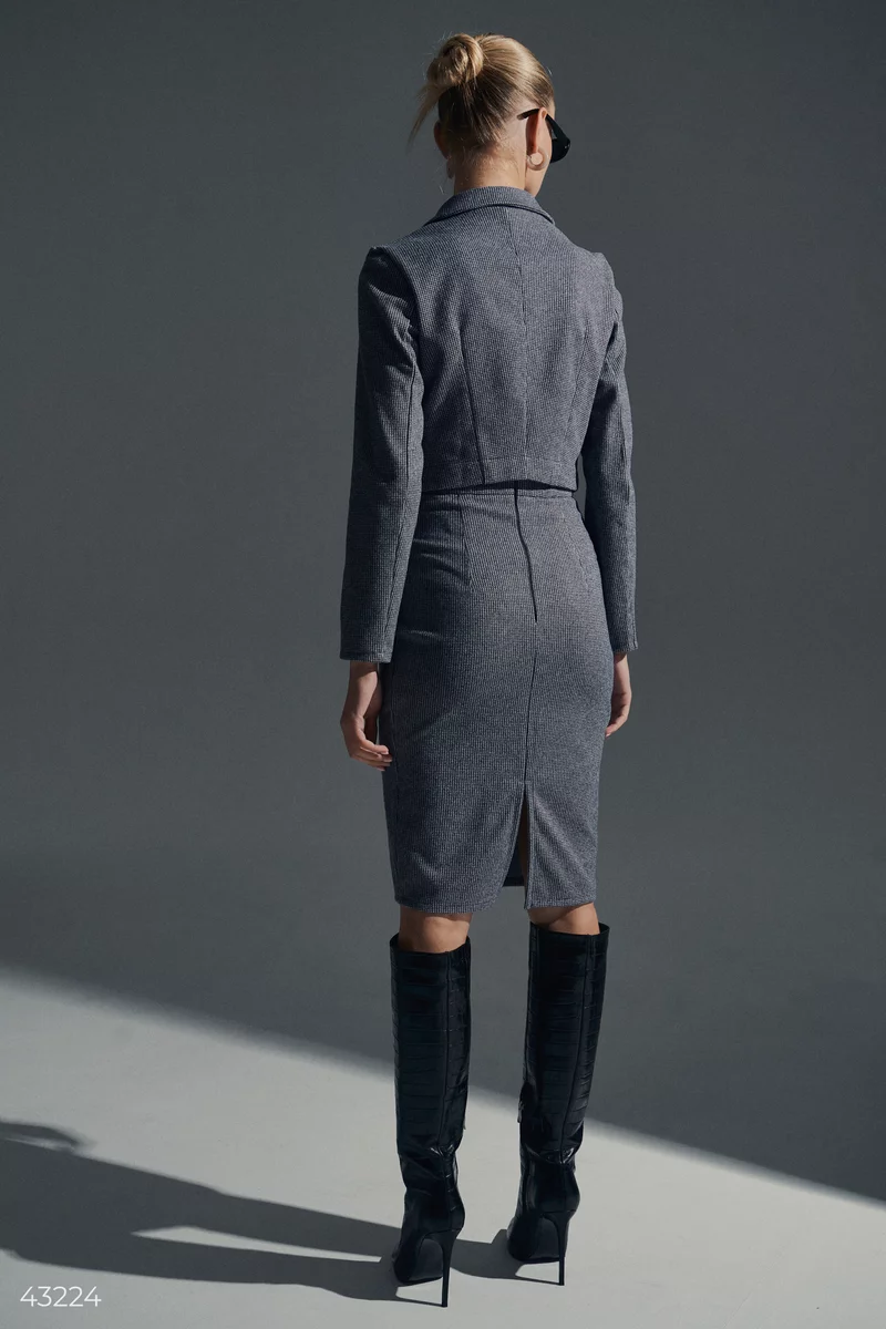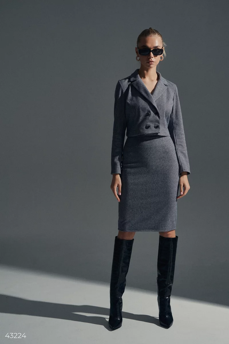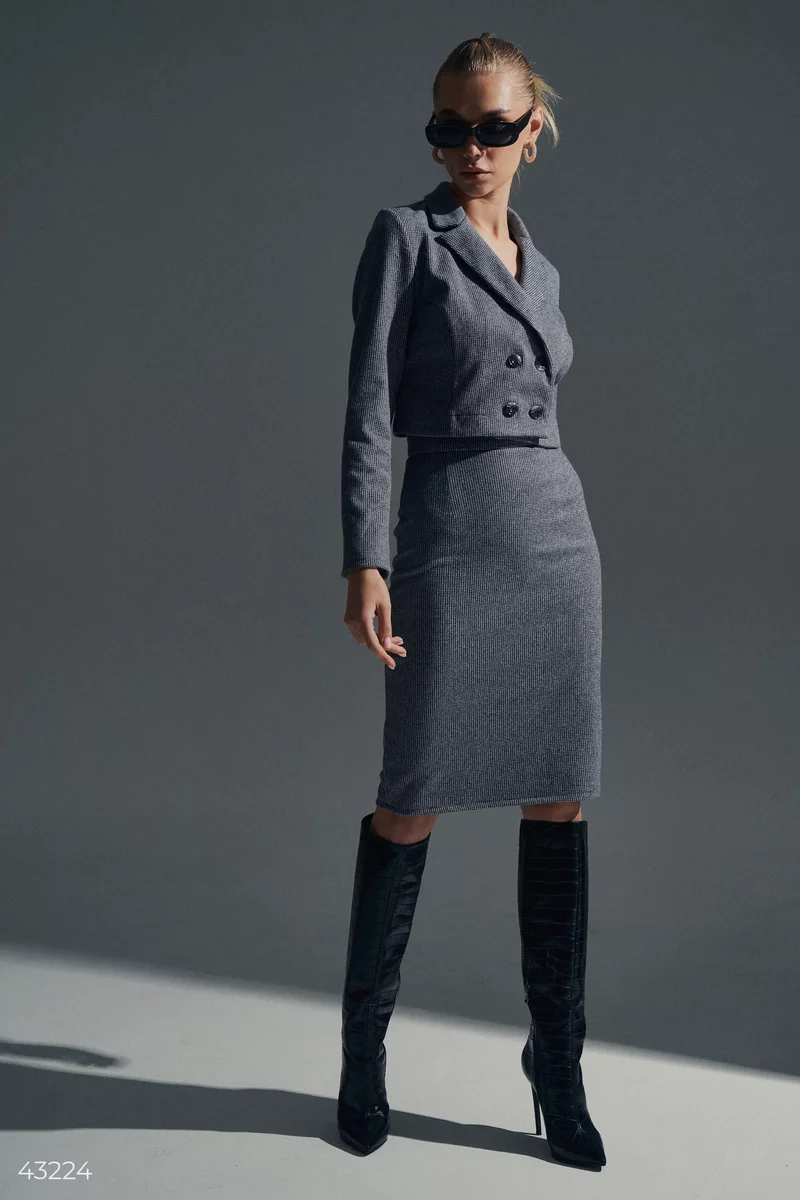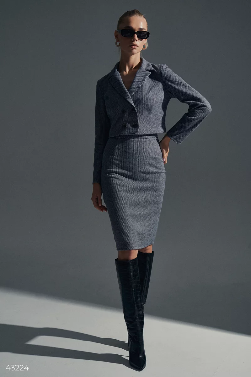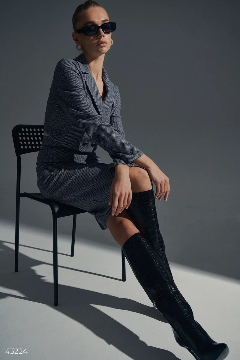 A cropped jacket in petite houndstooth print is an easy way to add a stylish touch to your everyday wardrobe. He can keep company as an image, collected in one scale, and basic things. For sewing a model with a straight cut with a collar with lapels, a soft material with the addition of wool was used.