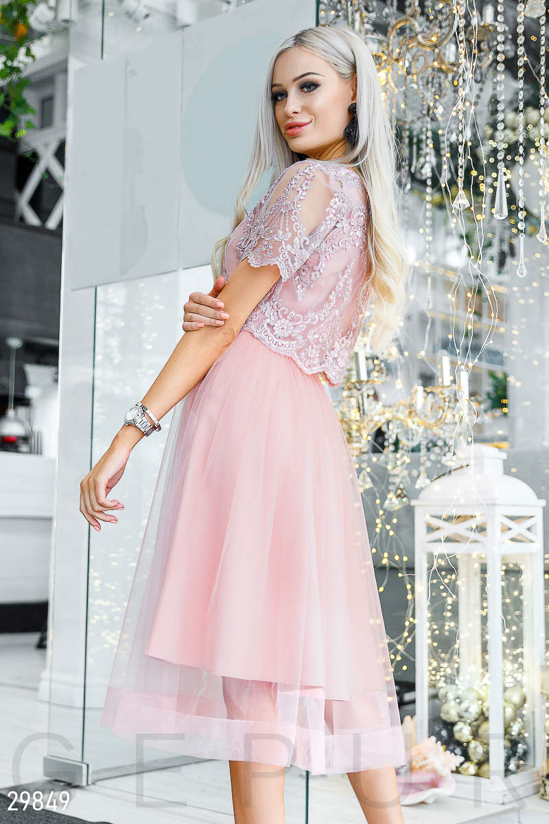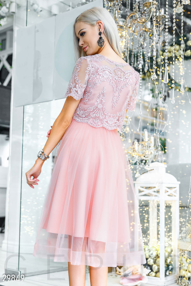 the dress is beautiful, but it was not powdery pink as in the photo, but dark lilac, the color .... I was waiting for pink. but he is the color of a withered tea rose.
