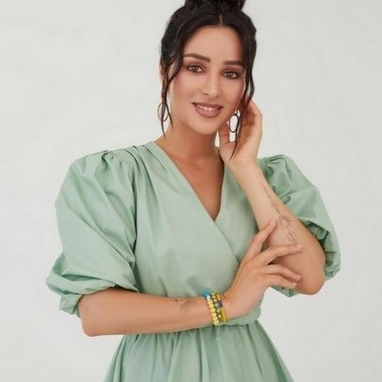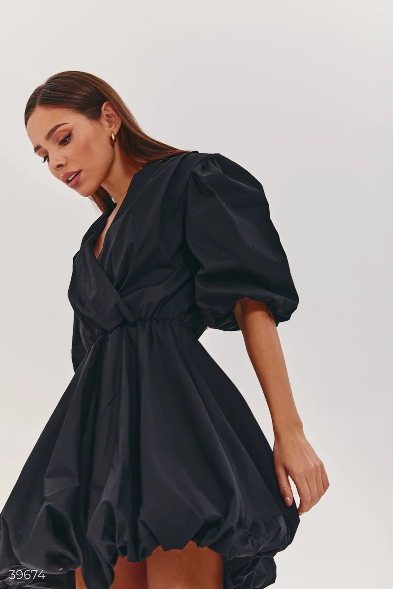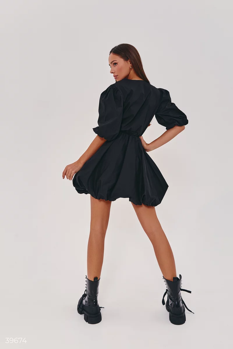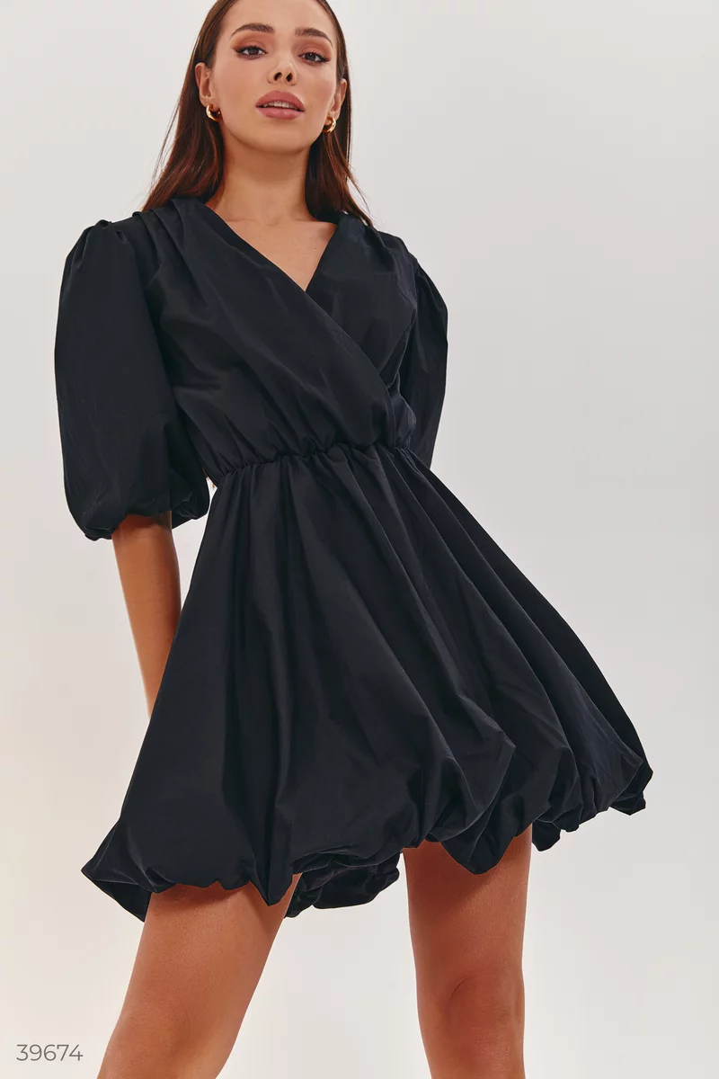 An airy dress in classic black will help you balance the silhouette. Elastic insert at the waist, voluminous sleeves and a fluffy skirt will create an easy look for every day and for the evening. Style your look with white sneakers, classic pumps, or trendy square-toe boots to set the right mood.