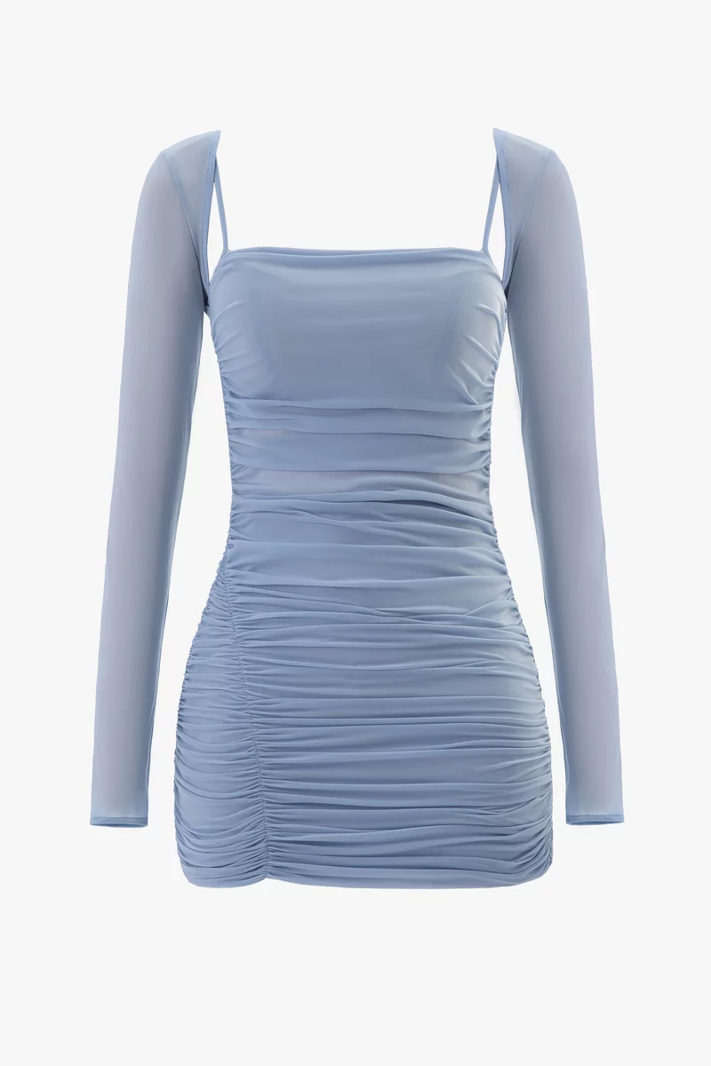 A seductive mini dress with a tight fit - a weightless mesh top with drape. Comes with a matching mesh underwire bra