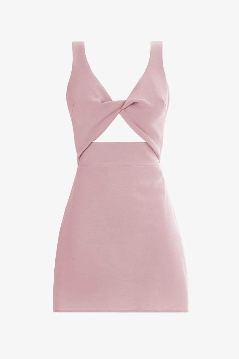 Mini dress with an accented neckline and a high waist. Concealed zipper at the back