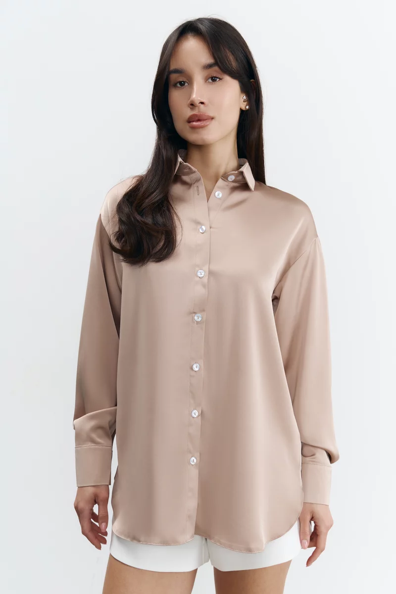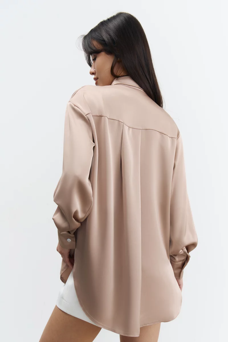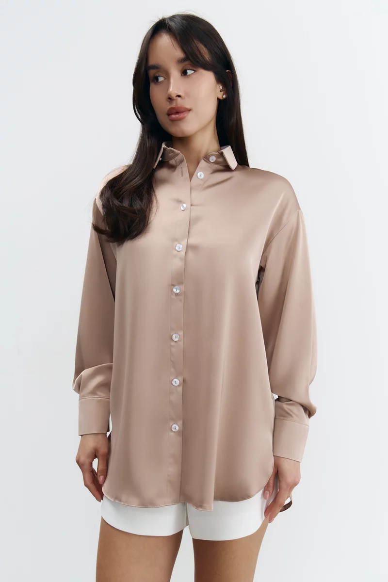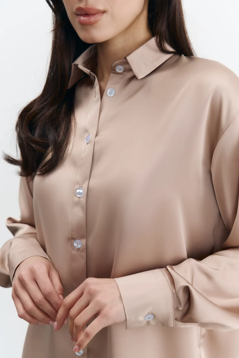 Oversized shirt made of artificial silk in camel shade