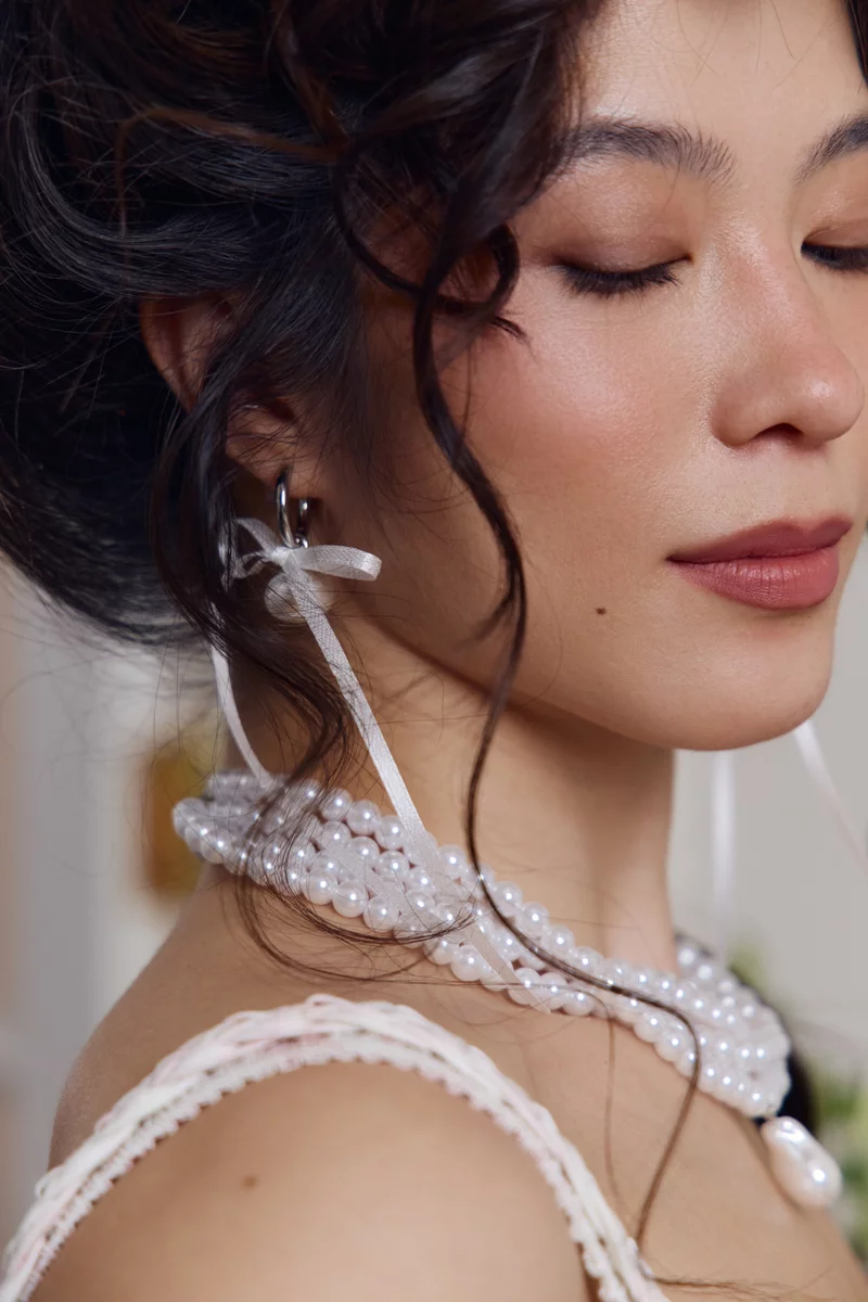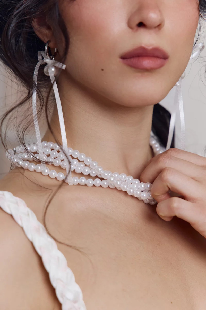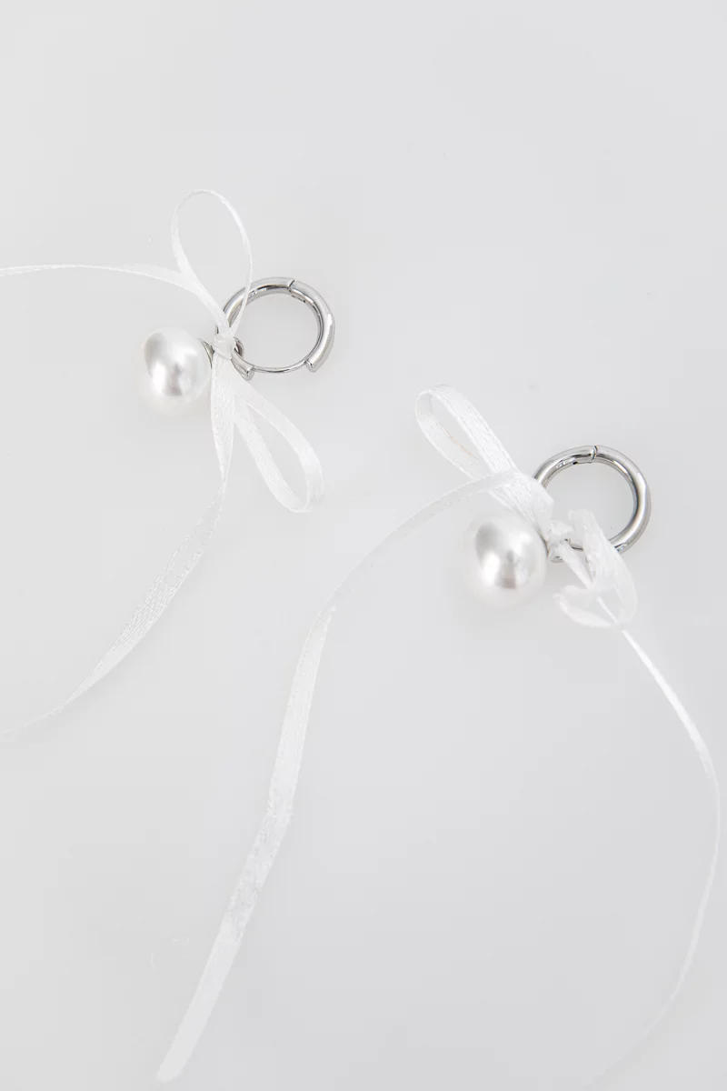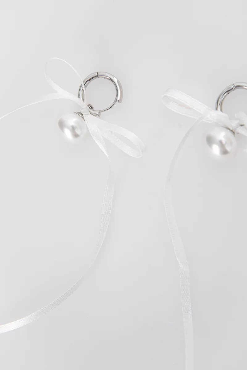 Silver earrings with pearl and bow