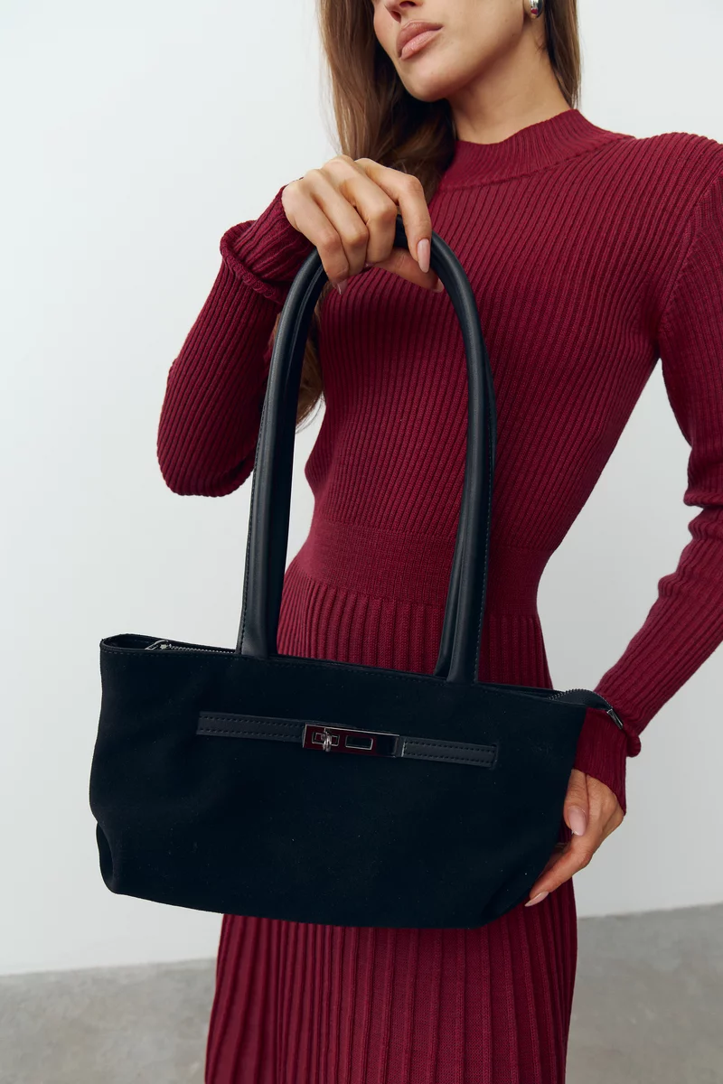 Black combination bag made of natural suede and eco-leather