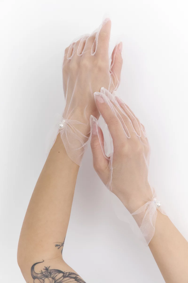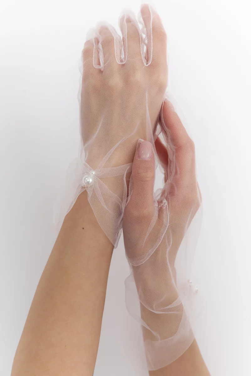 Milky short mesh gloves