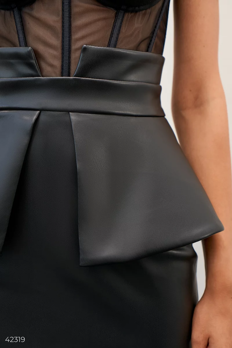 Skirt Bomb! I took xs. My hips are narrow and due to the peplum, belt, the figure is perfect! Eco leather quality