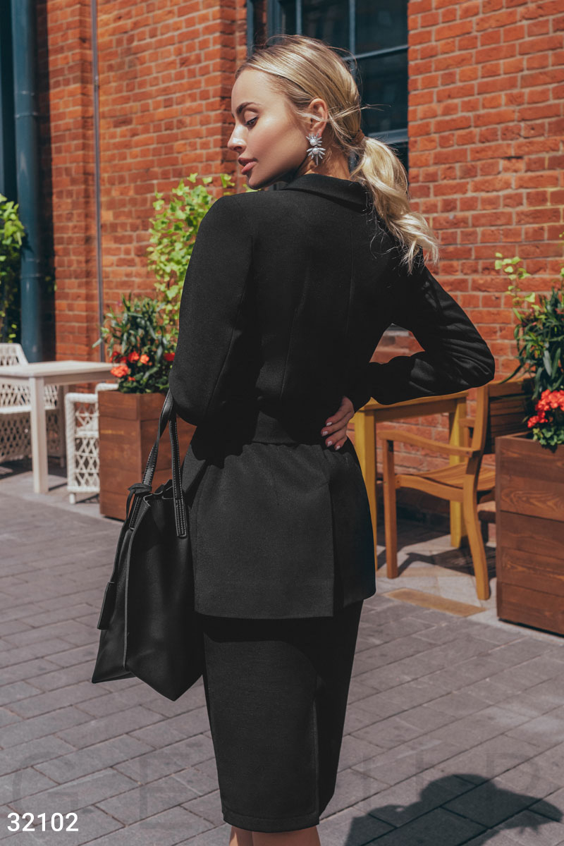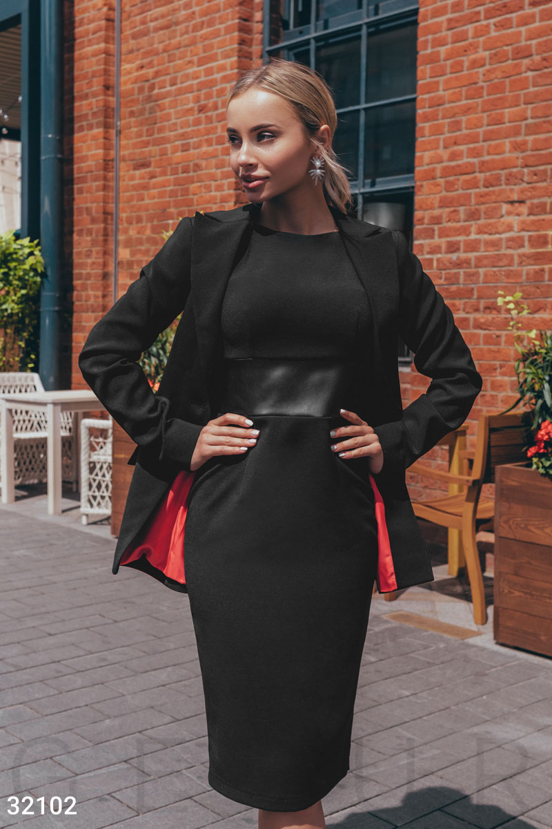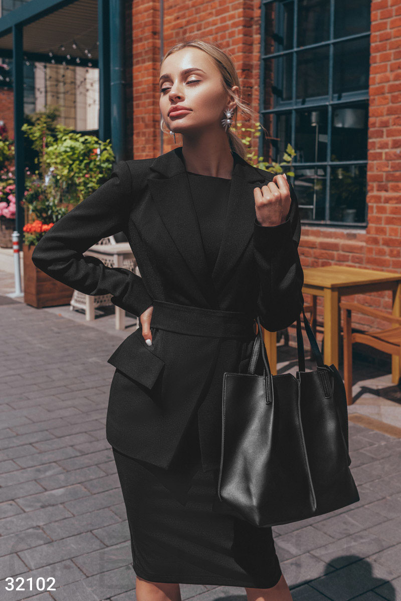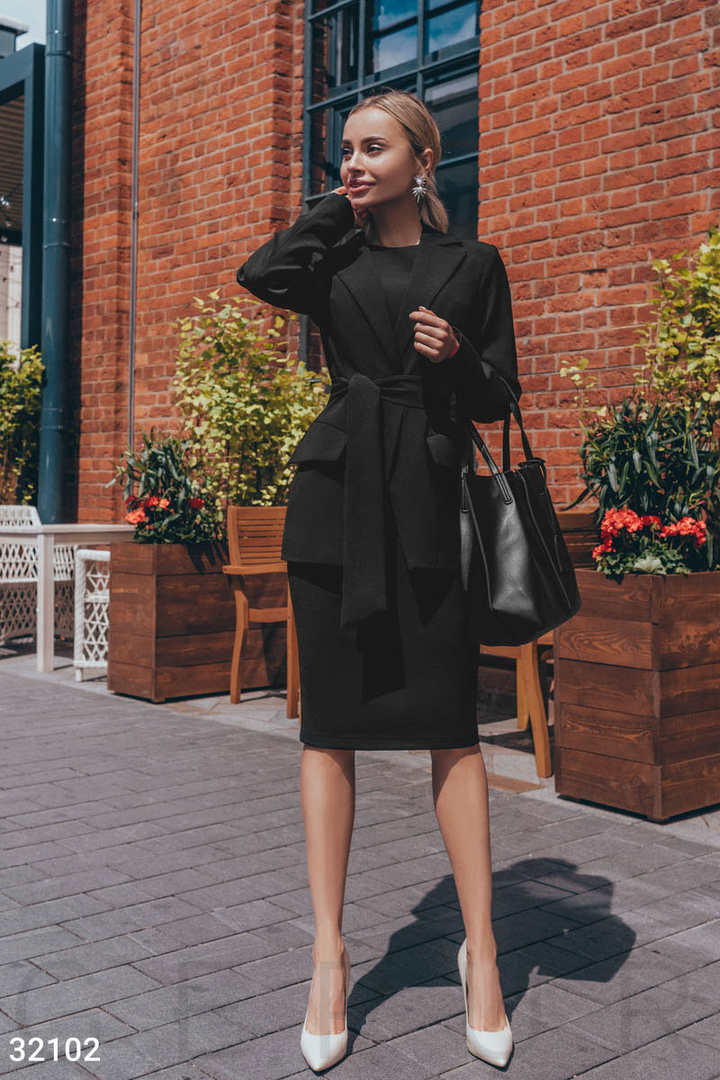 Классический жакет на подкладе с однотонным поясом от дизайнеров Gepur, выполненный из высококачественной костюмной ткани: отложной воротник, остроконечные лацканы, длинный рукав, два прорезных кармана с клапаном, небольшой разрез-шлица на спинке. Звездную коллекцию представляет известная певица Анна Седокова.