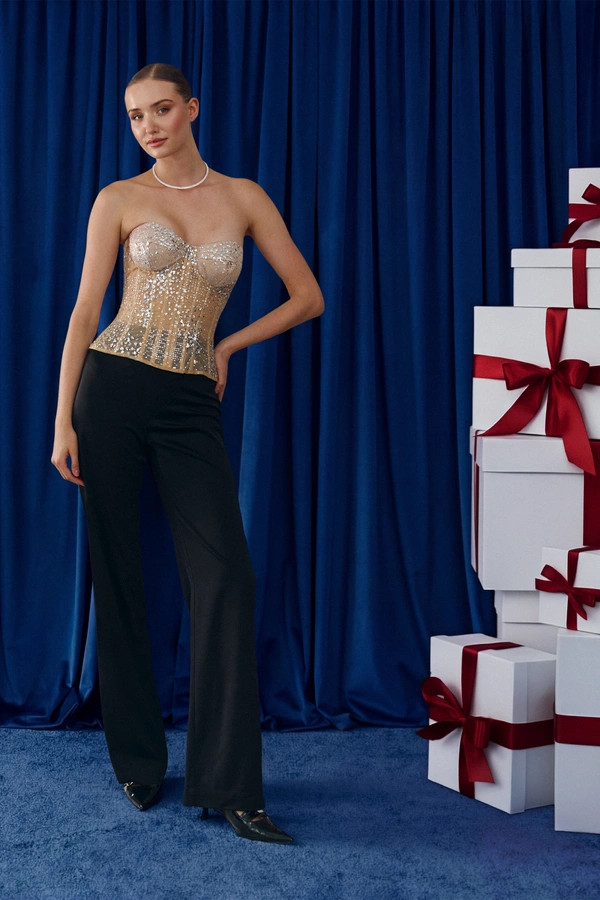Корсет с кружевом & сатиновые брюки
