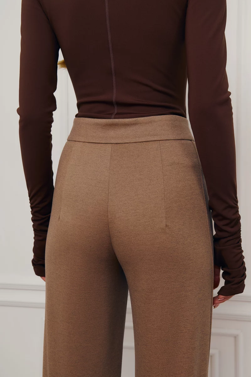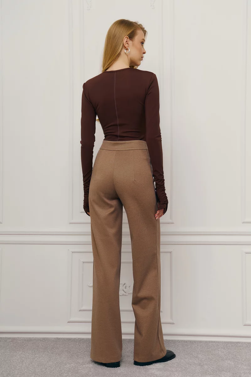 Бежевые брюки-палаццо с асимметричным поясом