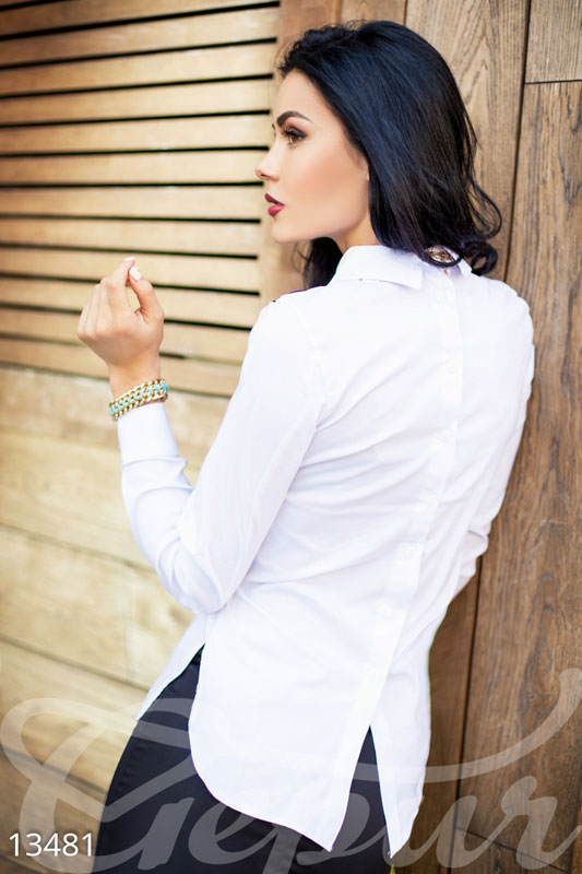 Есть такая в розовом цвете! Очень красивая рубашка! Сзади на пуговичках! Спереди дайвинг , а сама ткань стрейчевая! Мне нравится! Рекомендую!Сидит свободненько, как на модели