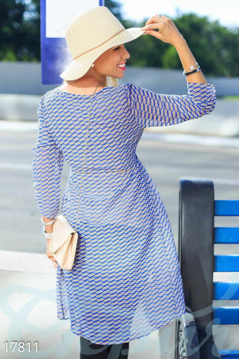 Блуза-туника для будущих мам, выполненная из шифона с контрастным принтом: свободный рукав 7/8, втачной пояс с завязками и удлиненная спинка с закругленным подолом. В комплект входит контрастный трикотажный топ.