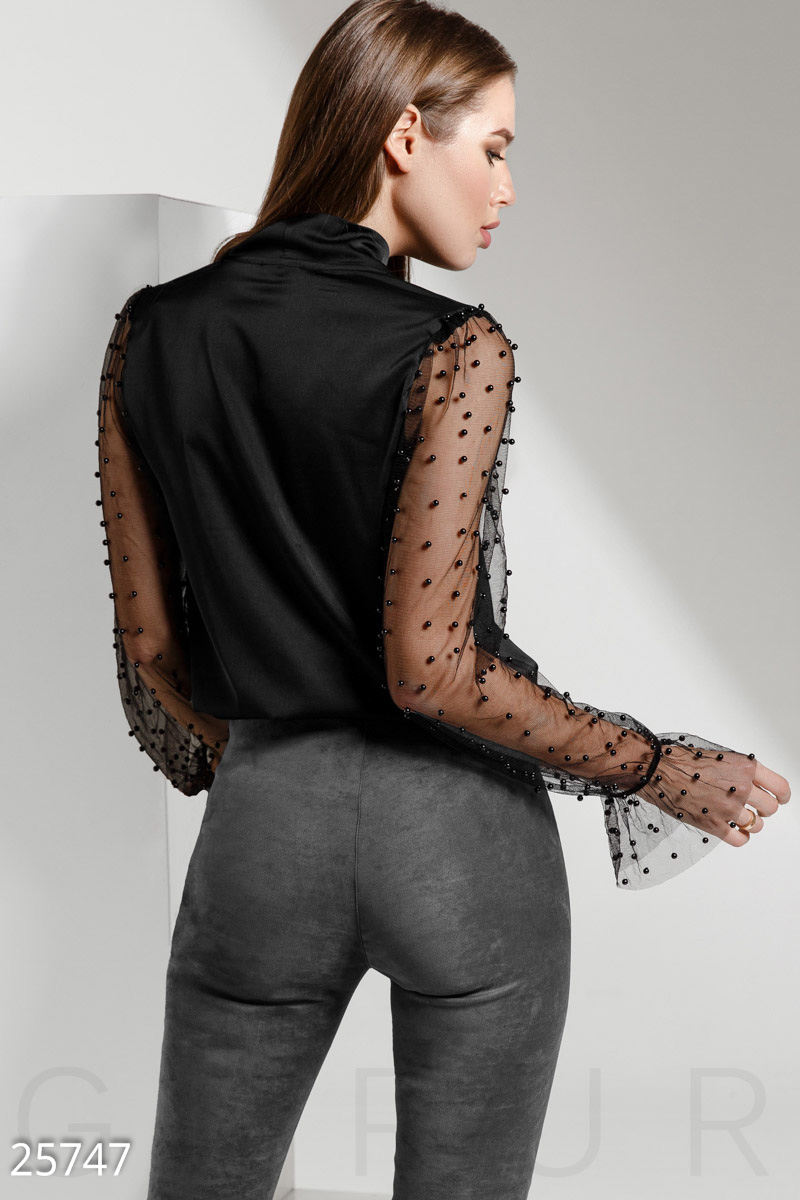 Блузка очень понравилась, хорошего качества, смотрится дорого. Качественный пошив бусины хорошо прикреплены.