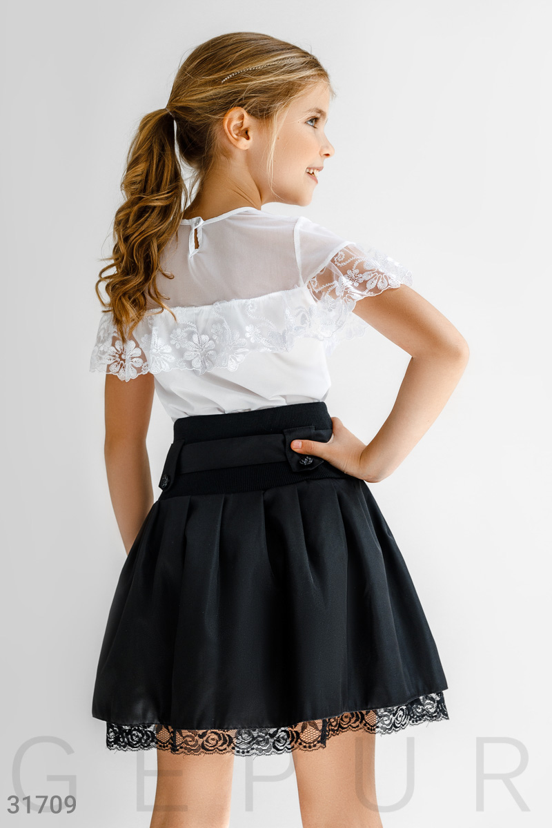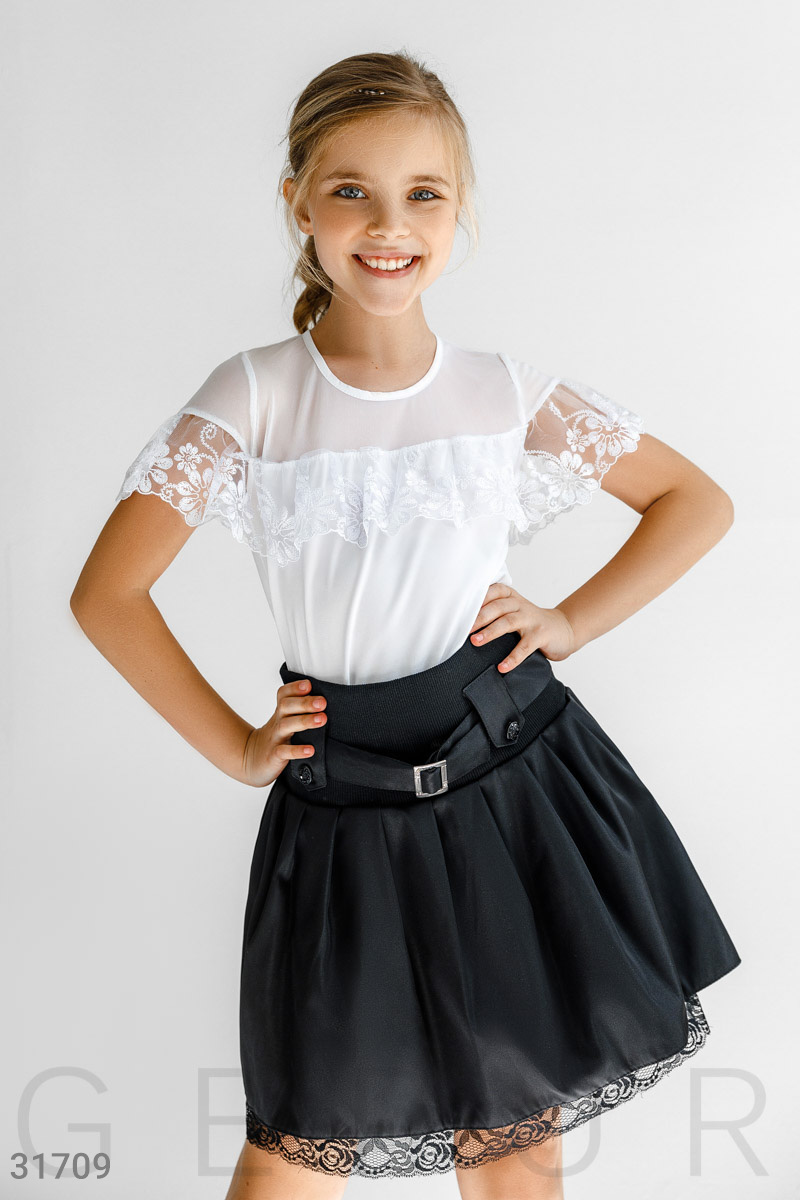 Сначала в эту блузу влюбилась я, тоже хочу такую, на ребенке сидит идеально, кружево мягкое, не колет и нигде не лезет, удобная пуговка на спинке. Спасибо за быструю доставку!!!