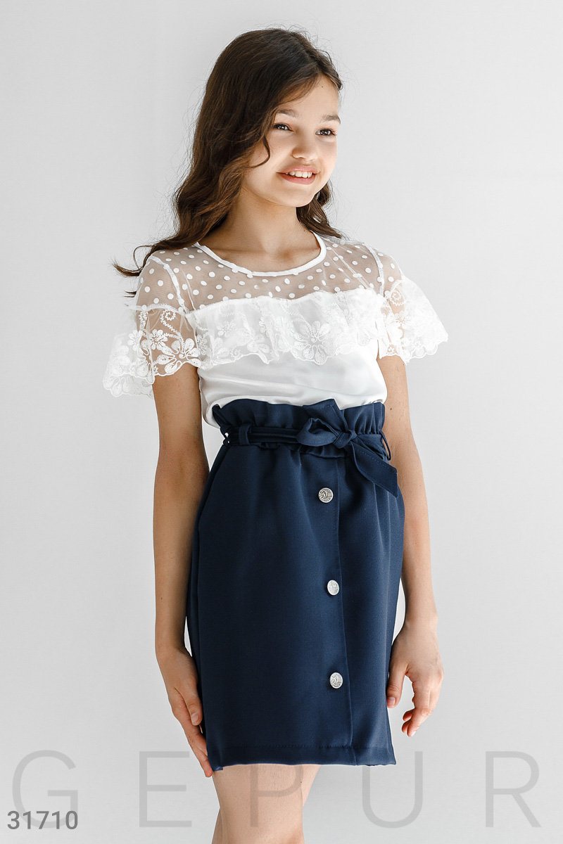 Заказывала эту блузочку для стройненькой девочки на рост 134 см. Девочка ростом 130 см. Блузочка точно такая, как на фото, села идеально по фигурке, есть еще запас на вырост, так что соответствует размеру. Ткань нежная, приятная на ощупь, смотрится...Детальнее