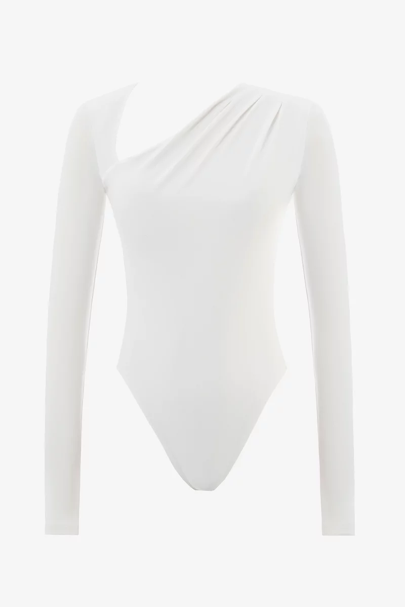 Молочный трикотажный боди с боковой драпировкой