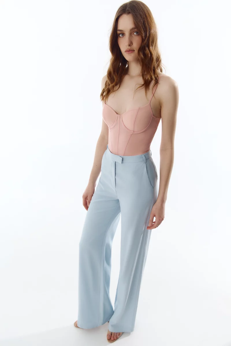 Соблазнительный боди на тонких регулируемых бретелях из эластичной стрейч-сетки. Модель с акцентным лифом на косточках, имеет поролоновые чашки. Застегивается на кнопки и дополнительно есть застежка на спине