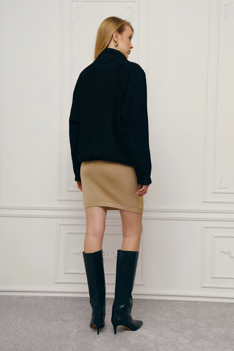 Бомбер свободного кроя выполнили из приятного к телу искусственного меха барашек на флисе, отлично сохраняющего тепло. Модель с боковыми карманами на молнии. Застёгивается на кнопки спереди