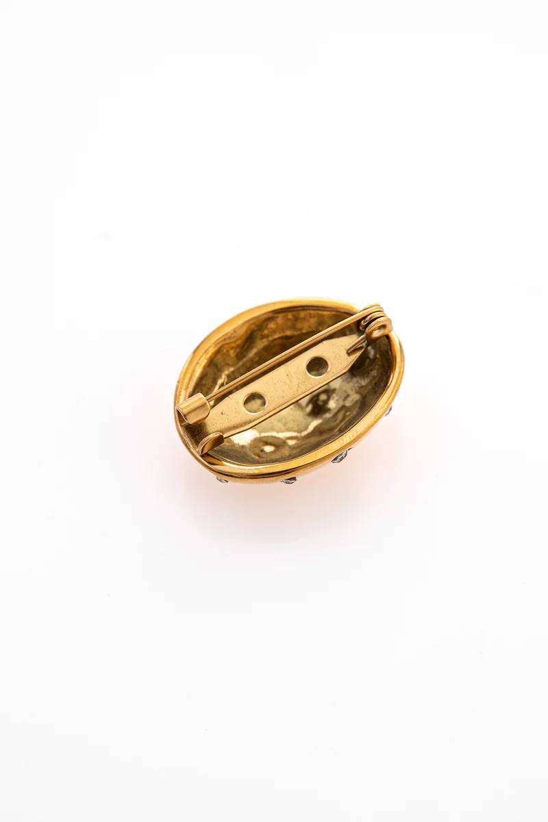 Брошь овальной формы выполнена из качественного бижутерного сплава. Ширина 2 см, высота 3 см. Аксессуар внесет стильный акцент в любой образ