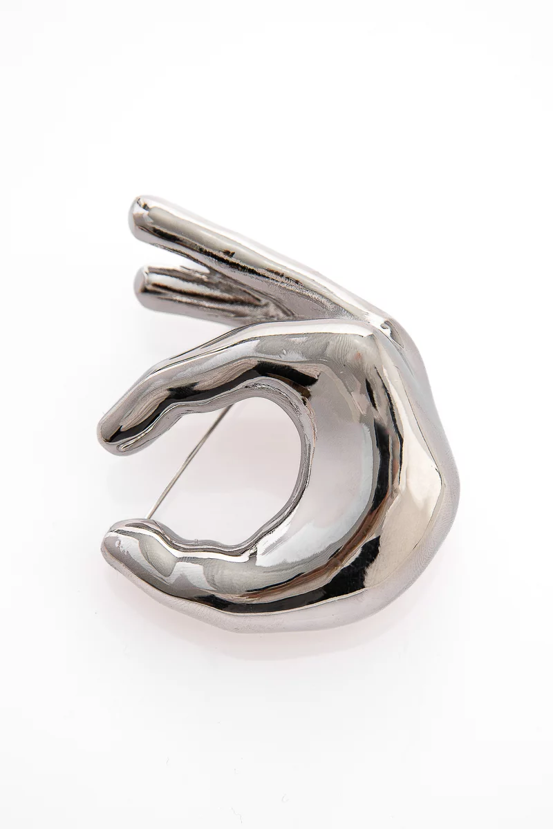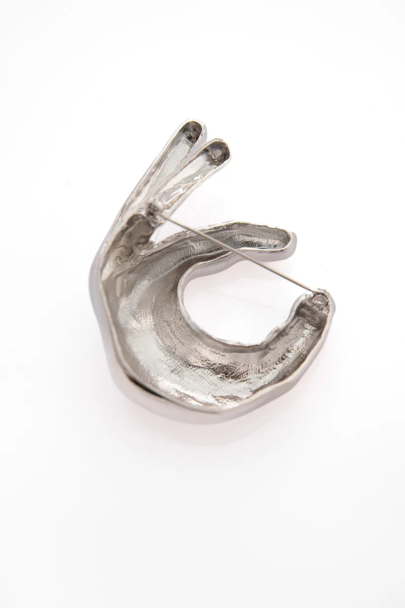 Серебристая брошь в форме руки