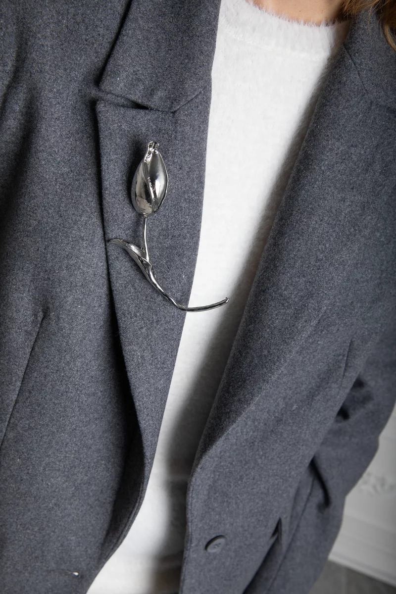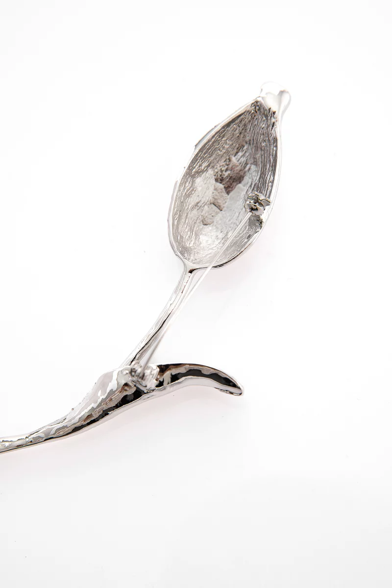 Брошь в форме цветка выполнена из качественного бижутерного сплава. Ширина 6 см, высота 12 см. Аксессуар внесет стильный акцент в любой образ