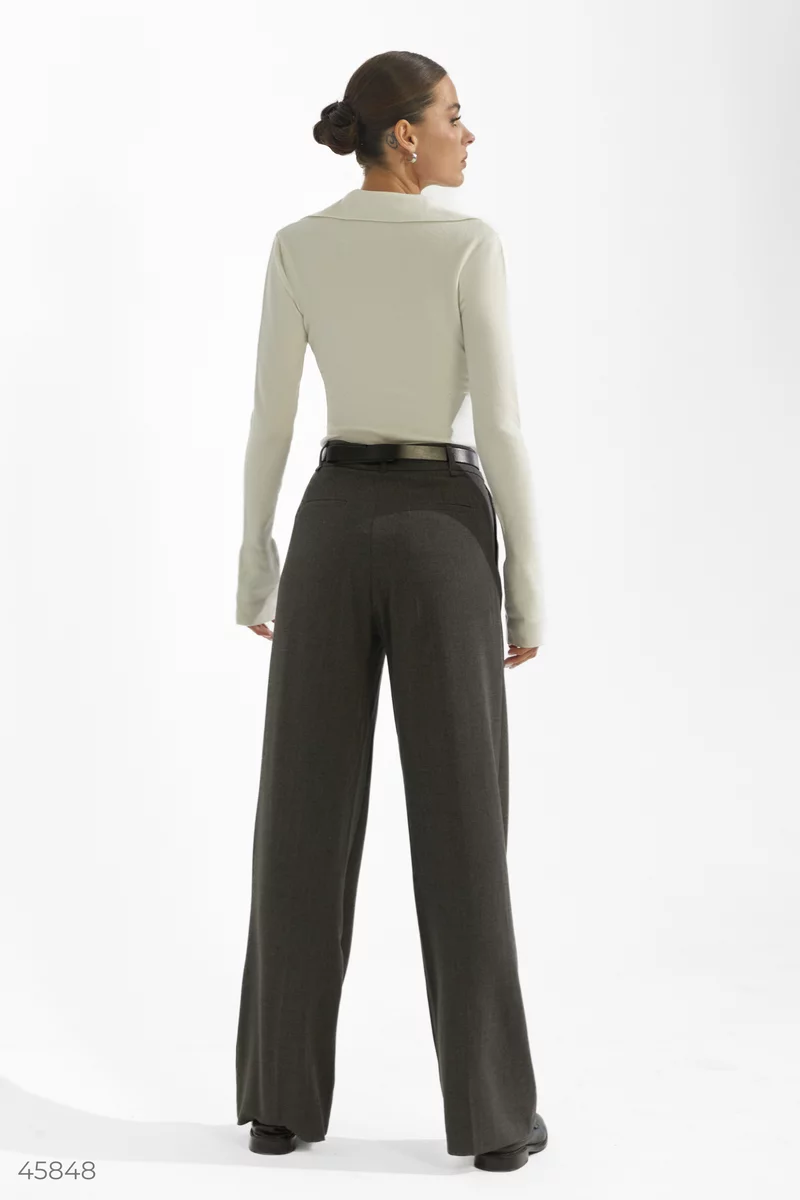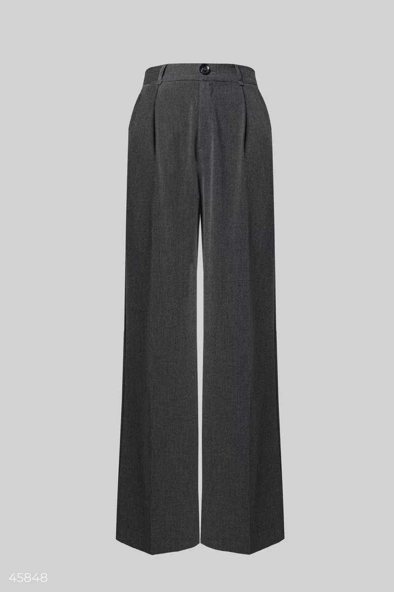 Классические серые брюки прямого кроя, сделанные из костюмной ткани. Два небольших кармана по бокам и декоративные сзади. Модель с комфортной посадкой станет базовым элементом для создания повседневного или делового образа.