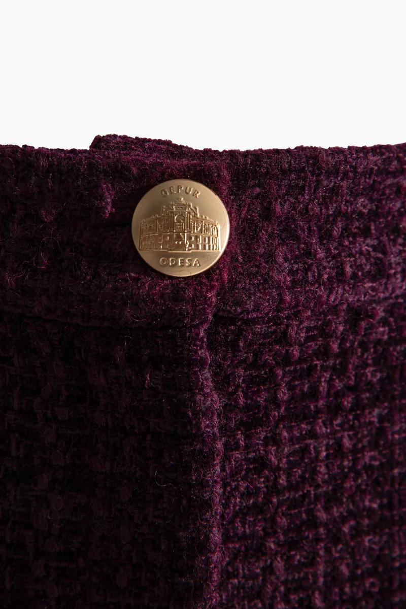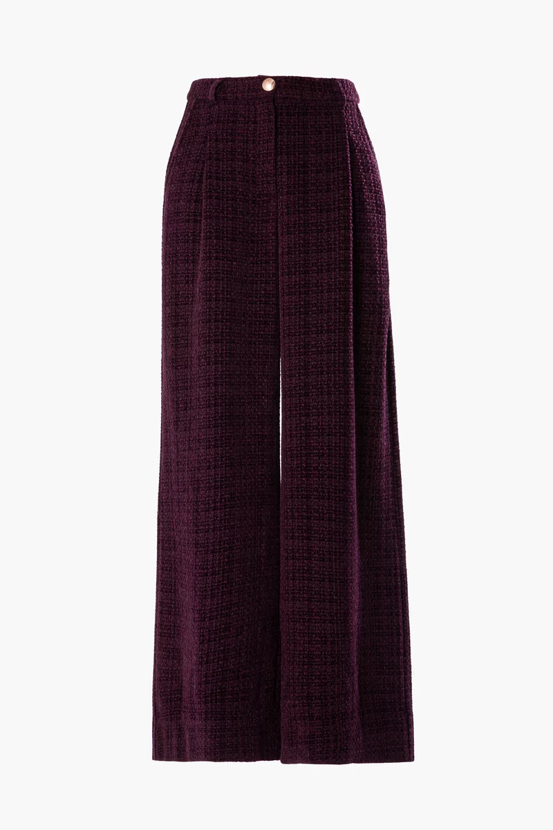 Брюки-палаццо из твида с добавлением шерсти в винном оттенке