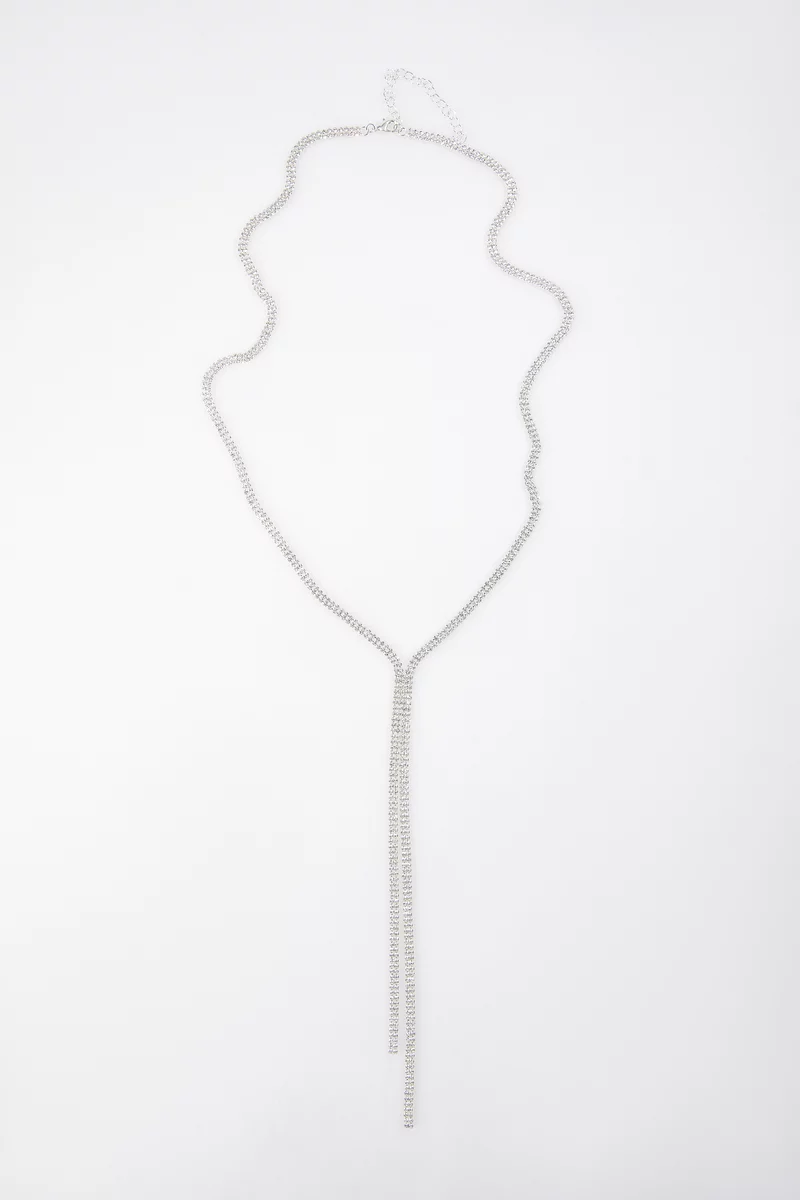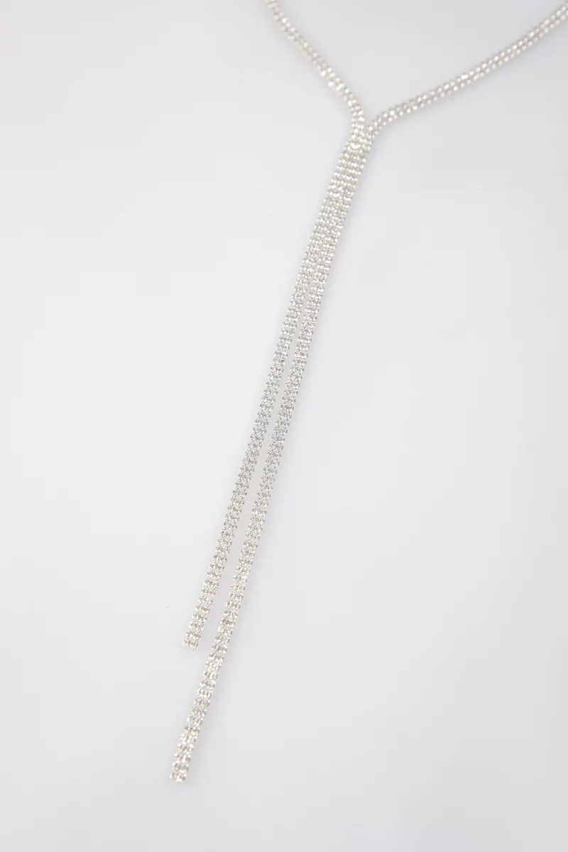Колье-цепь с двойной строчкой из страз. Основание серебристое. Длина 78 см (регулируется). Прекрасно завершит вечерний образ. Выполнена из качественного бижутерного сплава, который при правильном уходе не темнеет и долго служит. Покрытие не стирается, не окисляется и не оставляет следы на коже