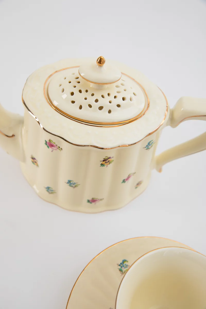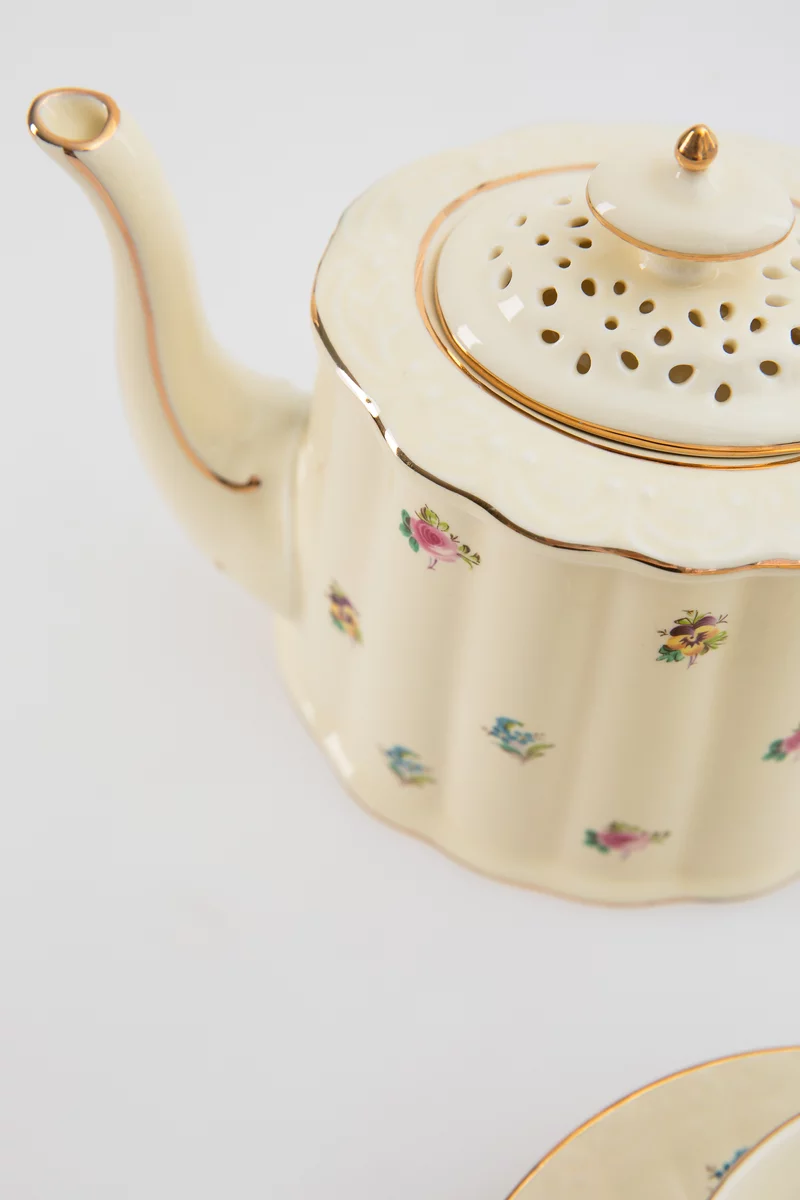 Фарфоровый чайник с цветочным декором - акцентная деталь, которая придаст эстетику и завершенность сервированию