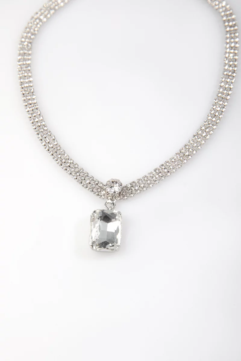 Колье с тройной строчкой со страз и камнем-подвеской. Основание серебристое. Длина 51,5 см (регулируется). Прекрасно завершит вечерний образ. Выполнена из качественного бижутерного сплава, который при правильном уходе не темнеет и долго служит. Покрытие не стирается, не окисляется и не оставляет следы на коже