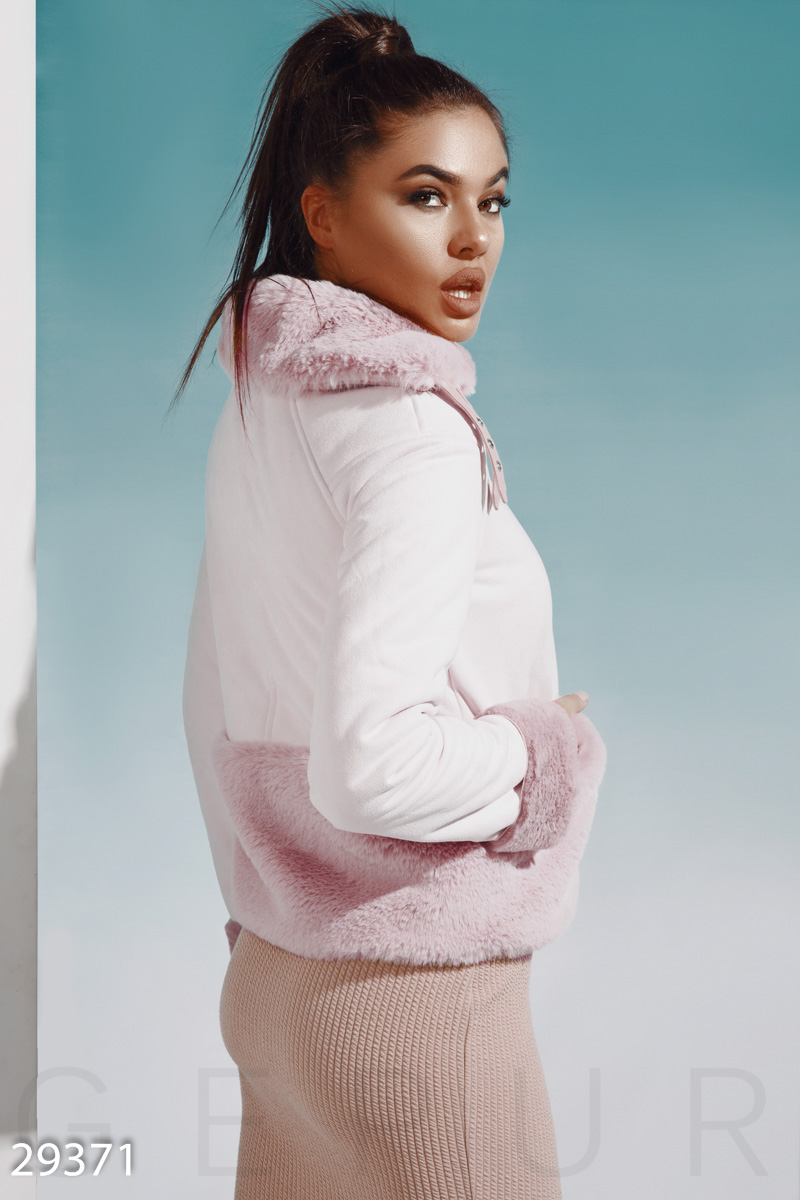 Как на фото, отличная, класно что можно подвернуть рукав на нужную длинну, там по всему рукаву мех. Только сыпится мех, надеюсь только пока новый, иниче на темные вещи не оденешь.
