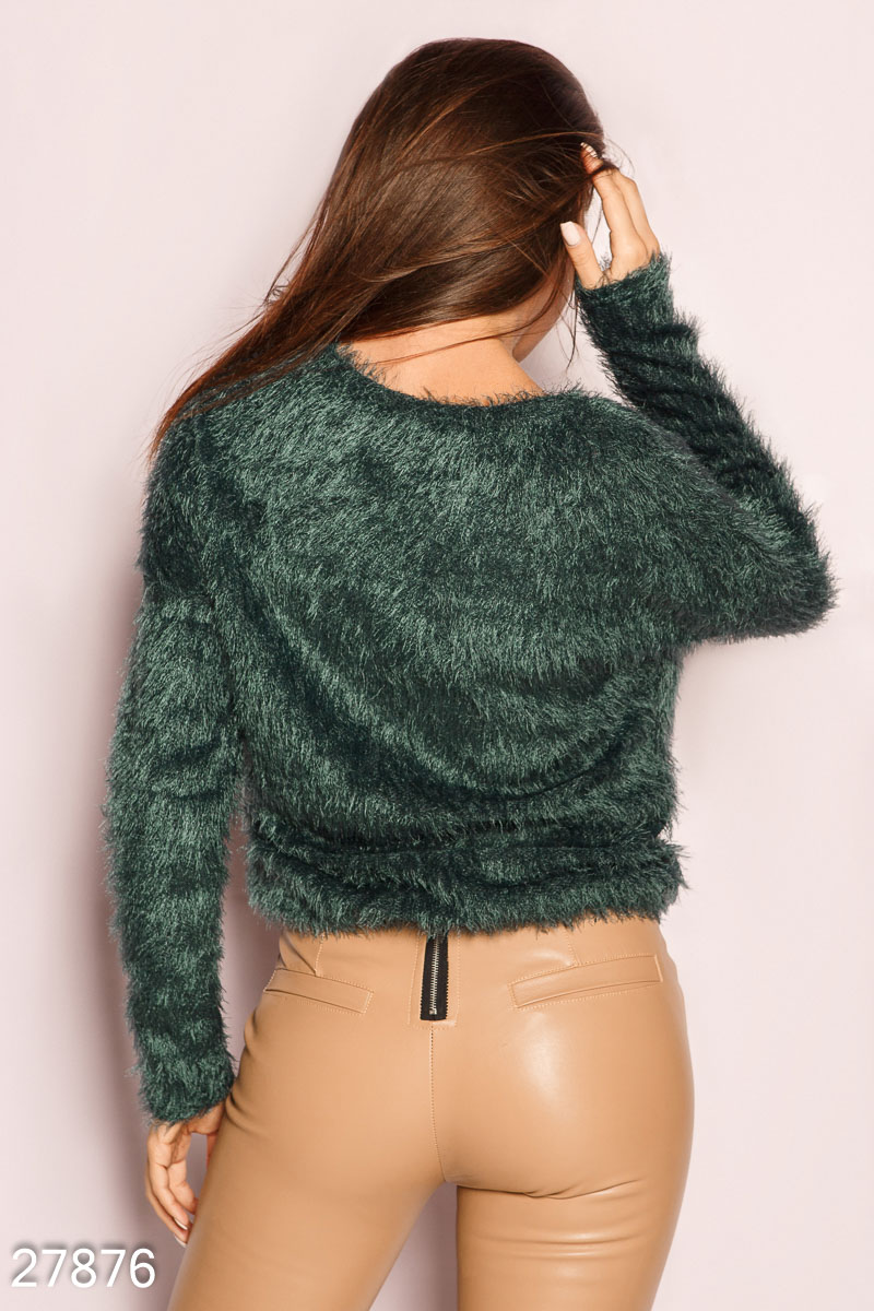 Актуальный свитерок-травка красивого цвета. Легкий, тоненький, почти невесомый. Длина больше, чем казалась по фото, даже учитывая рост модели. Брала S на ОГ 90 см и рост 160 см.