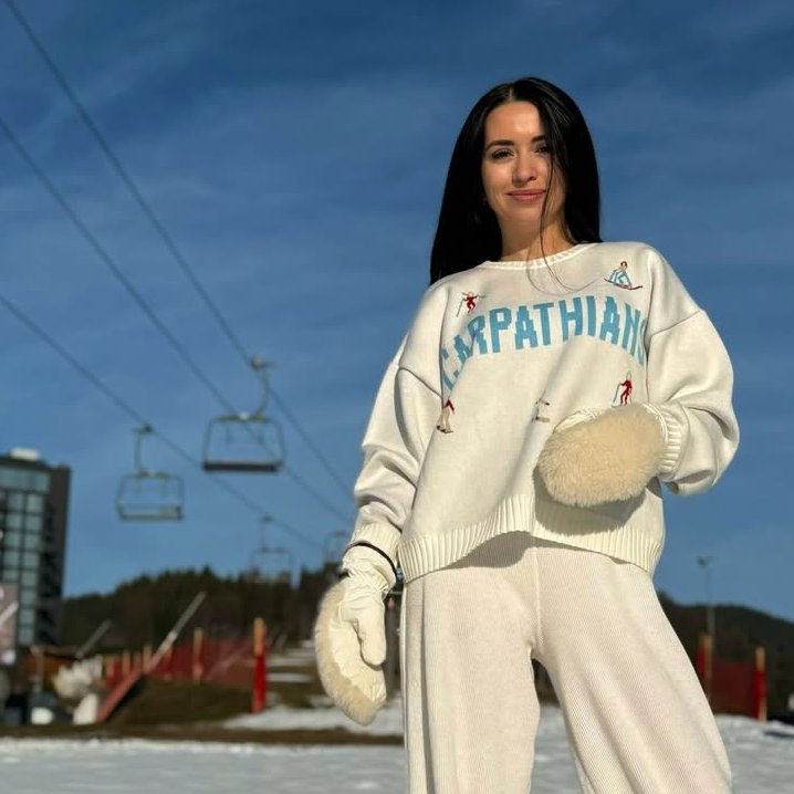 Джемпер сделает любой образ стильным и уютным. Модель стилизована уникальным горнолыжным принтом. Мягкая, приятная гладкая пряжа с преимуществом хлопка в составе будет согревать тебя в холодный период