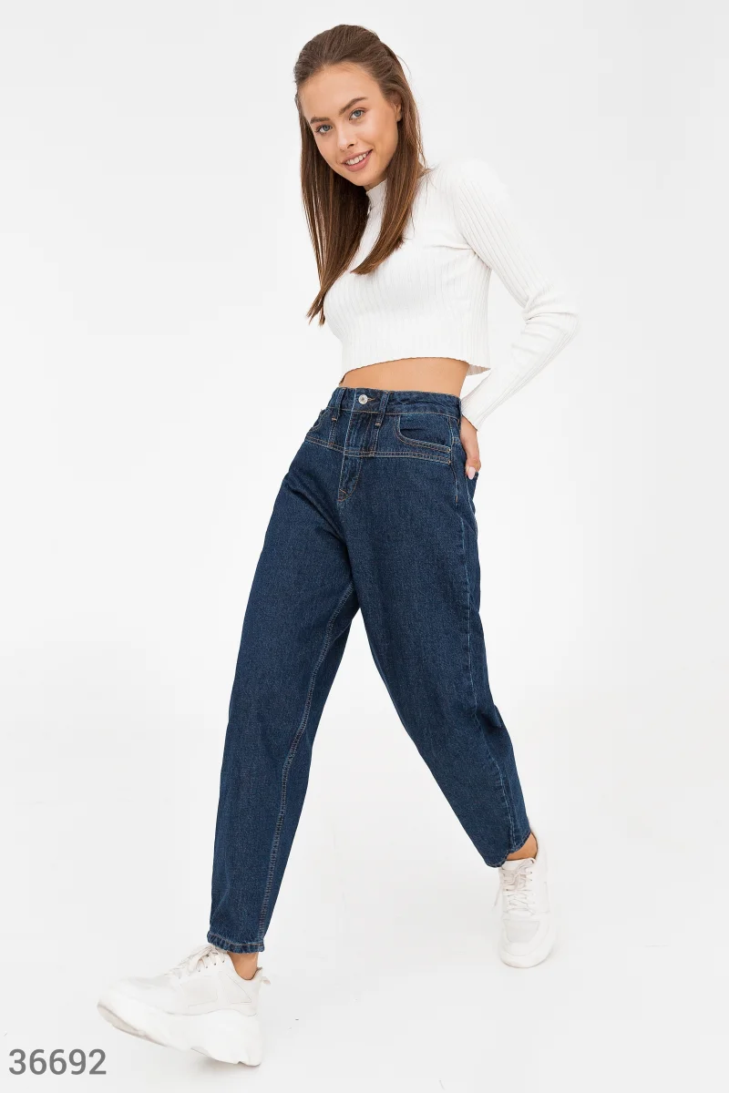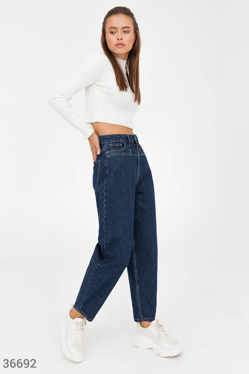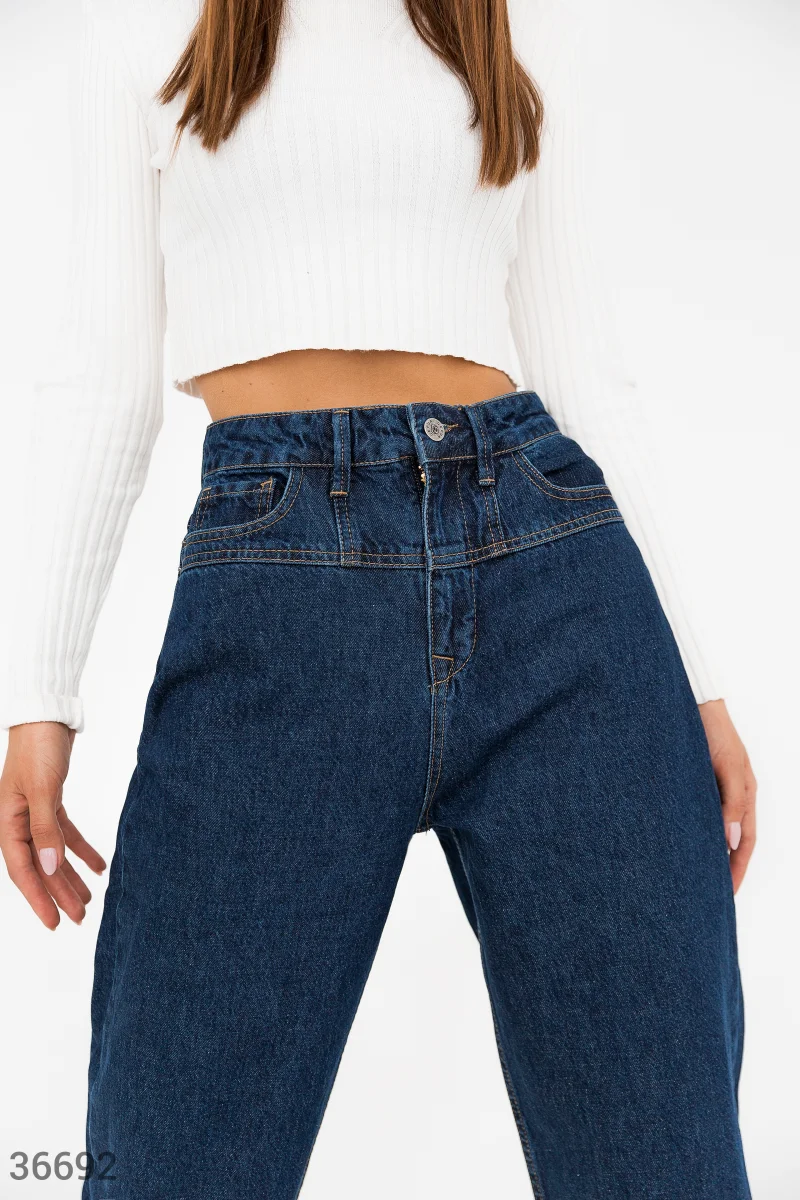 Широкие джинсы slouchy станут выгодным приобретением гардероба. Модель классического синего цвета выполнена из 100% хлопка и дополнена оригинальной кокеткой на поясе.