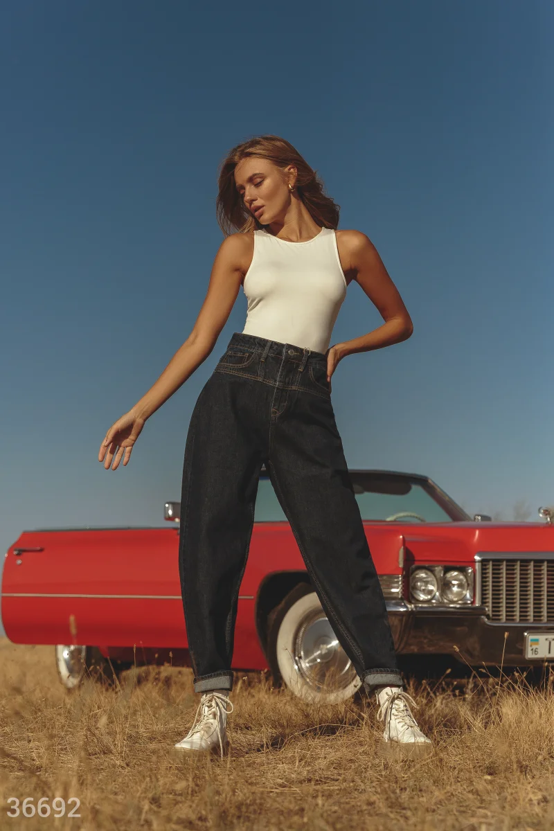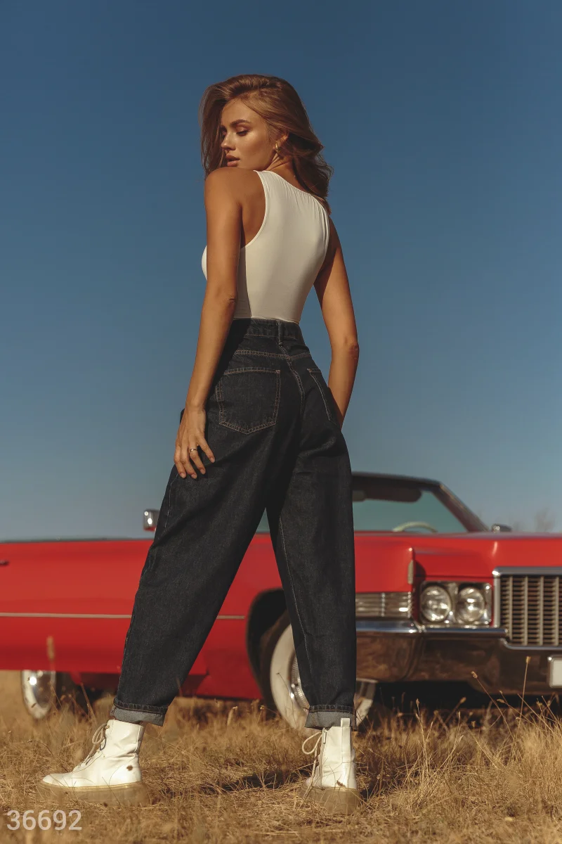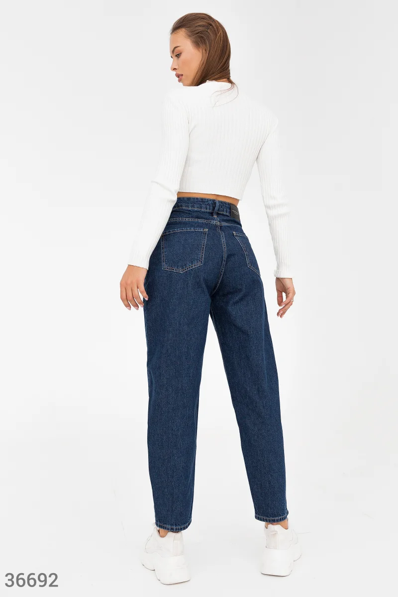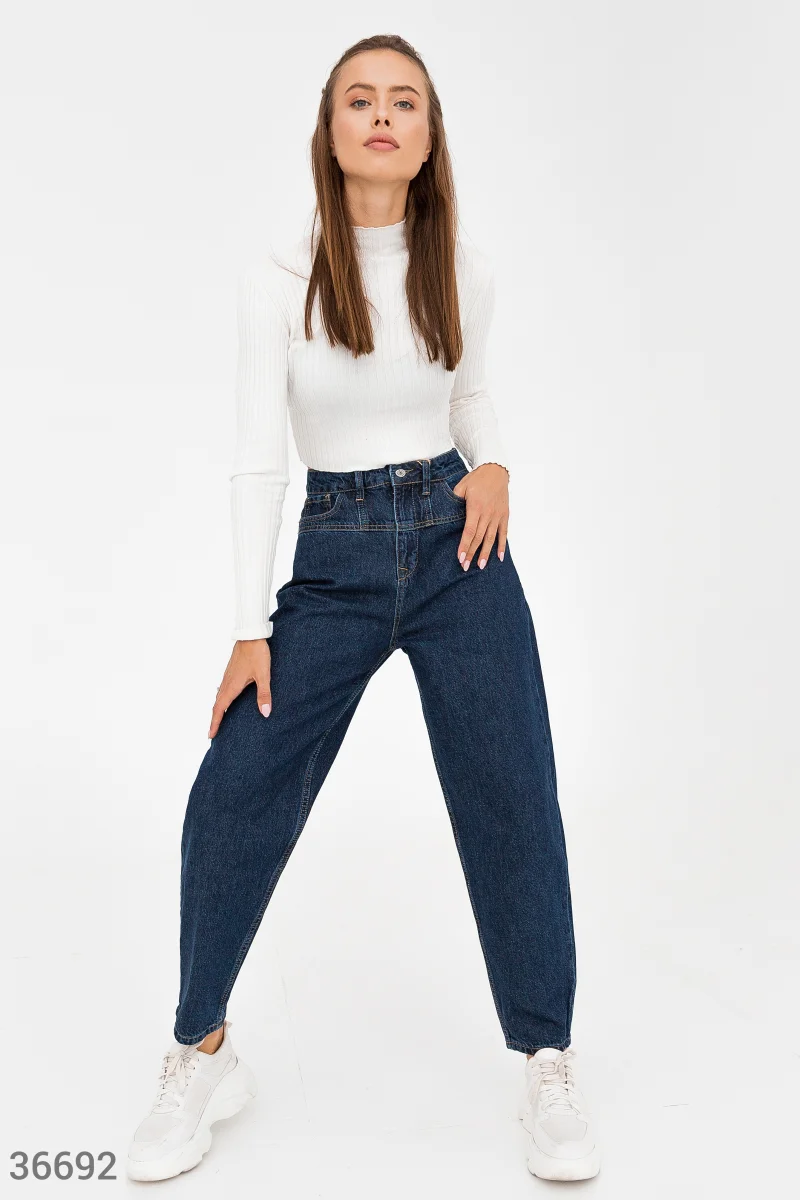 Широкие джинсы slouchy станут выгодным приобретением гардероба. Модель классического синего цвета выполнена из 100% хлопка и дополнена оригинальной кокеткой на поясе.